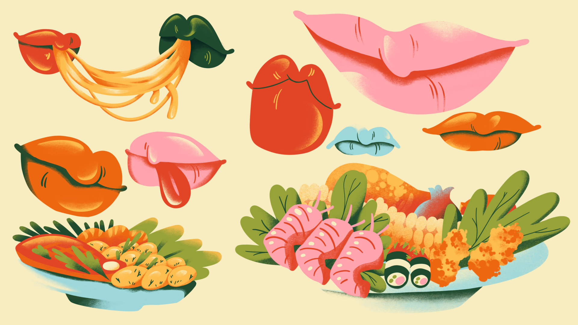 Визуальная концепция строится вокруг провокационного и в то же время универсального символа — рта. Жующего, смеющегося, говорящего. Это прямой и эмоциональный способ передать гедонизм и радость события. Мы использовали сочные, «съедобные» цвета и живые иллюстрации, чтобы айдентика дышала энергией и вкусом к жизни.