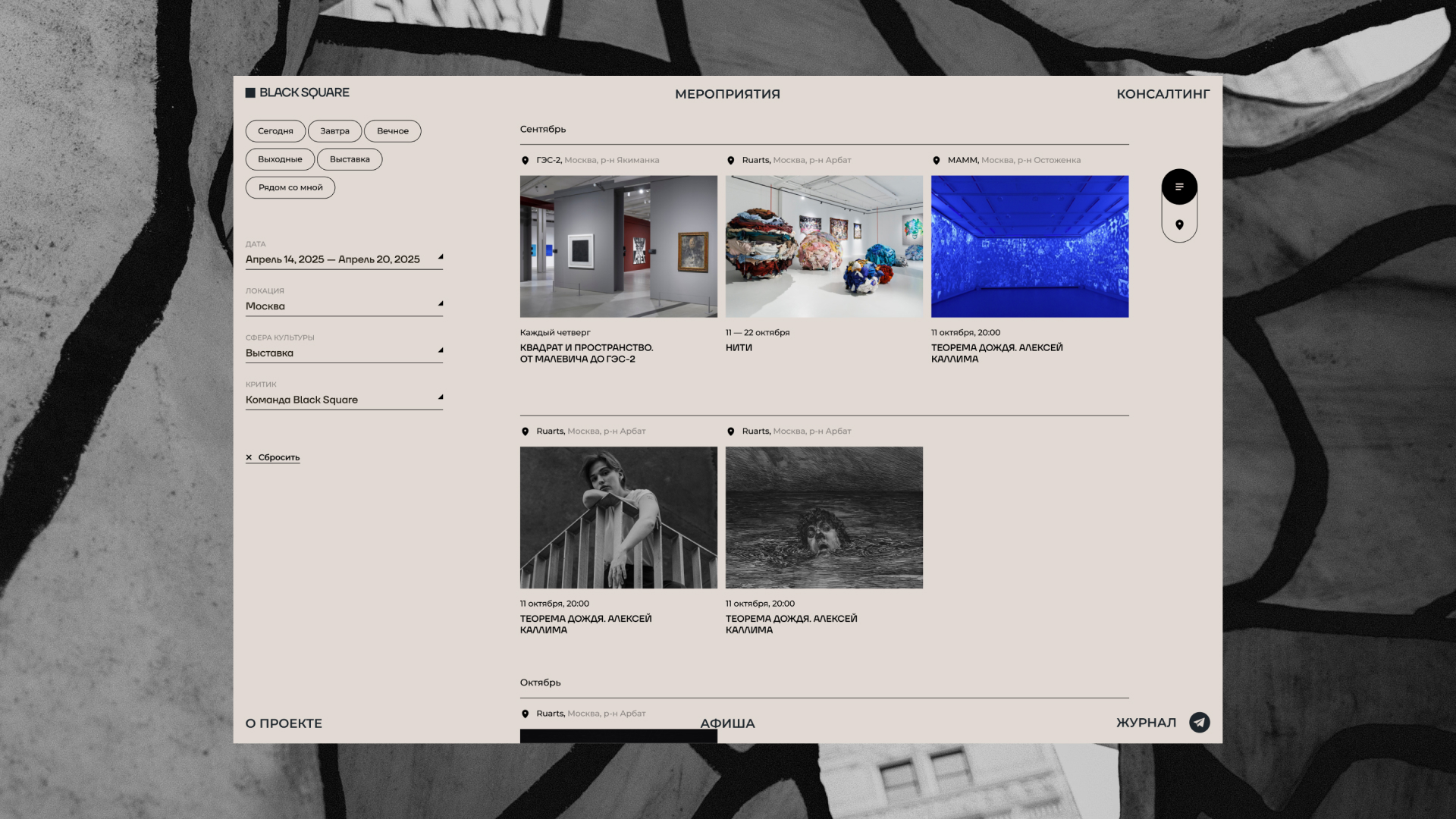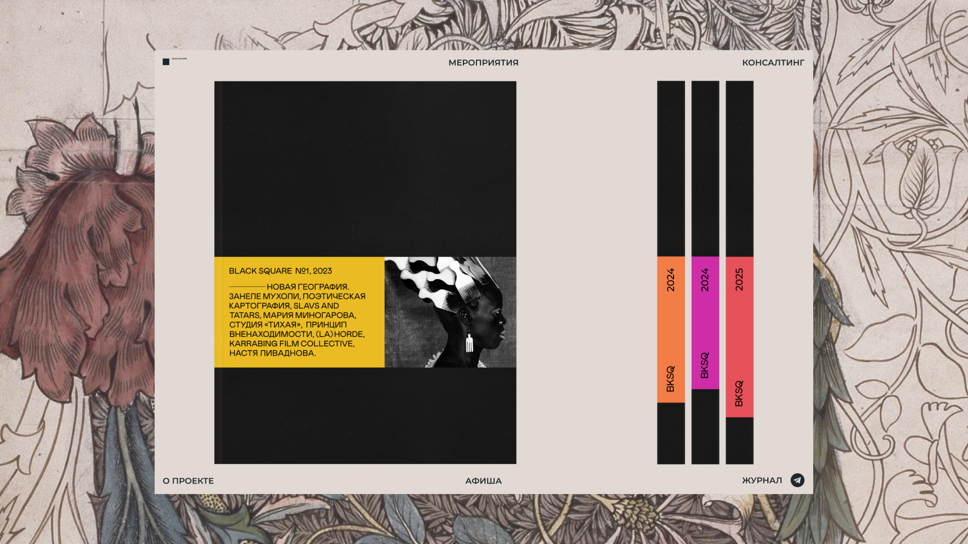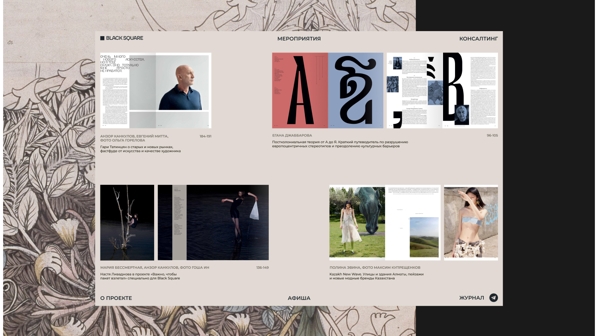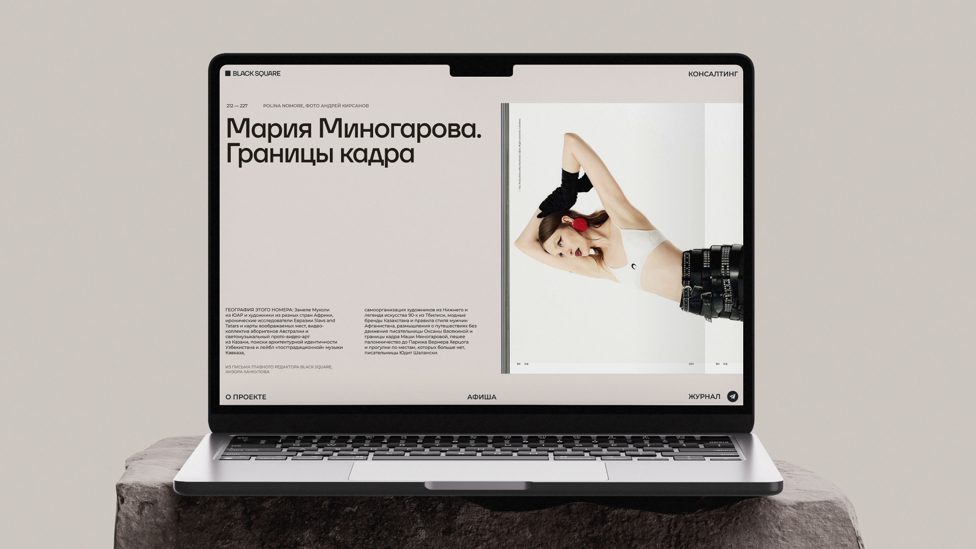 Нашей задачей было создать коллекционный сайт для коллекционного журнала. Такой, который сам станет частью проекта Black Square и раскроет все его грани. Конечная цель — поддержать коммуникацию с текущей аудиторией, привлечь новых читателей журнала, ценителей искусства и представителей бизнеса, заинтересованных в проектах в области культуры, искусства и моды.