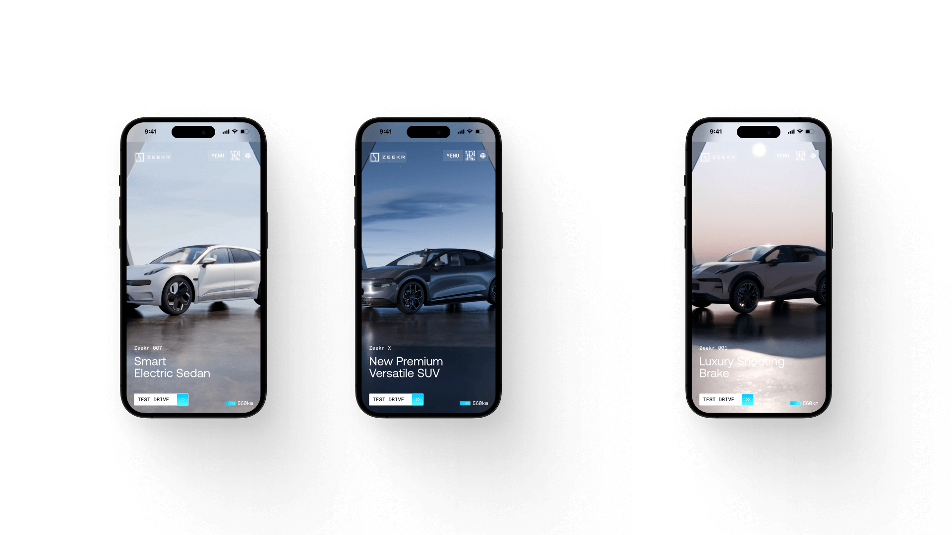 Разработан сайт для моделей автомобилей 001, 007, X бренда Zeekr. Zeekr сочетает в себе инновационные технологии и эксклюзивный дизайн.