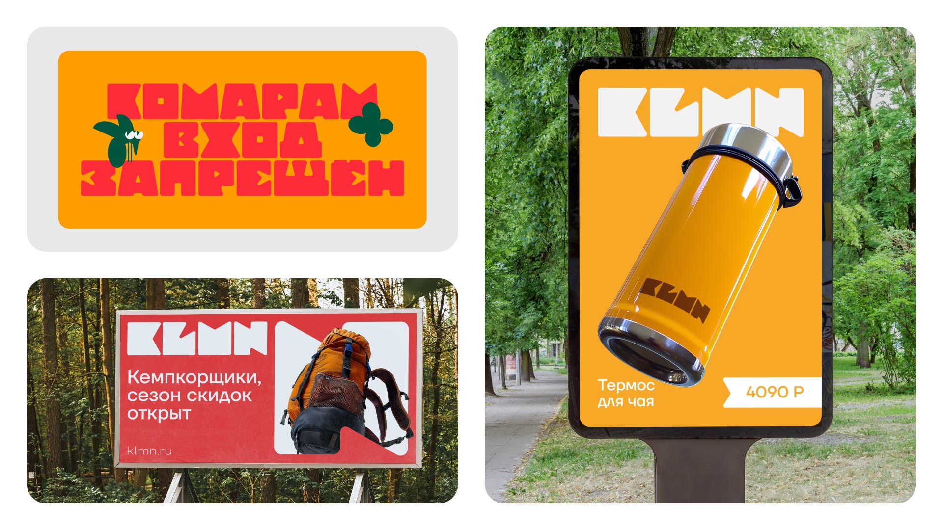 Название бренда — это общепринятое среди походников сокращение, или первые буквы слов "кружка, ложка, миска, нож", или KLMN. Фирменный стиль и tone of voice настроены на ламповую волну таких же романтиков-путешественников, как и его создатели. Характер бренда живой, открытый, ироничный, весёлый. На основе уникального логотипа был создан акцидентный шрифт KLMN Sans, который отлично располагается как на мерче с упаковкой, так и на навигации в ритейле.