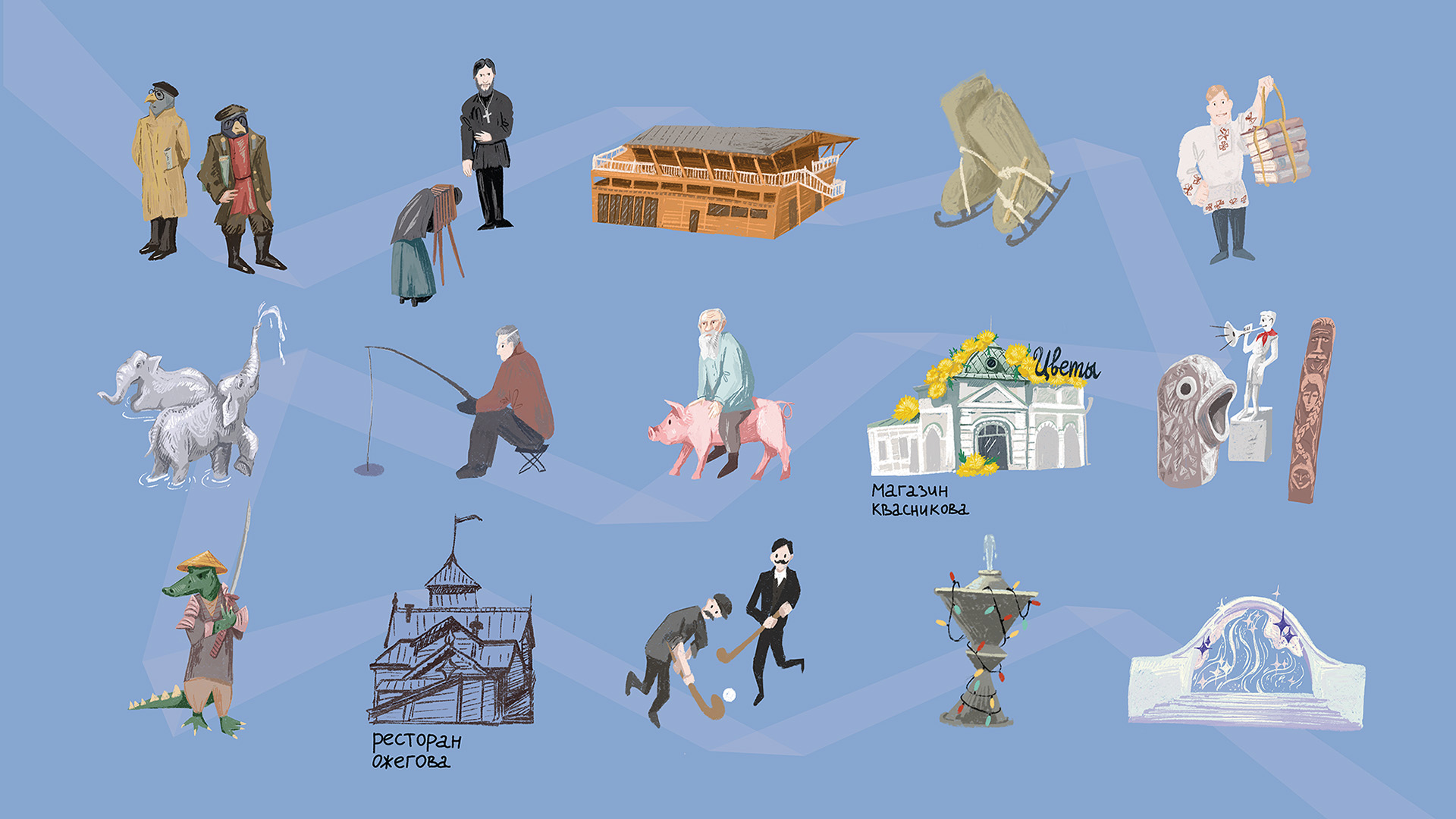 Иллюстрации для краеведческого проекта «Околотки на перемотки»