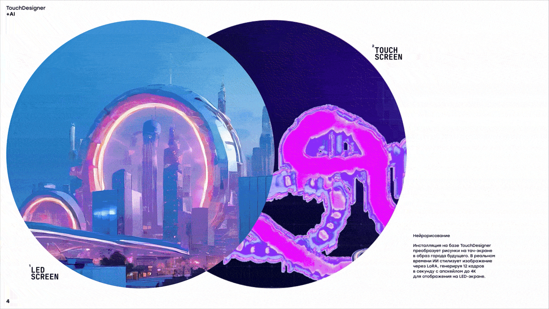 Чтобы представить сложные темы в увлекательном формате, мы придумали несколько разных механик, которые сделали инсталляции не только информативными, но и интересными. В зоне “Нейробиблиотека” можно было услышать советы от великих умов человечества, созданных с помощью ИИ: при приближении посетителей на экранах оживали портреты Чехова, Гоголя, Булгакова, Сократа и других известных личностей. Каждый персонаж давал мудрое наставление, связанное со здоровьем и образованием. Другая инсталляция позволяла создать собственный образ города будущего: на тач-экране можно было выбрать цвета и нарисовать абстрактную форму, а нейросеть в реальном времени генерировала на основе рисунка изображение города и выводила его на большой экран. Отдельного внимания заслуживает интерактивная инсталляция, демонстрирующая связь мелкой моторики и работы мозга. Посетители лепили из пластилина разные фигуры, а установленная сверху камера посылала изображение в нейросеть, которая интерпретировала увиденное и выводила на экран яркие и динамичные образы.