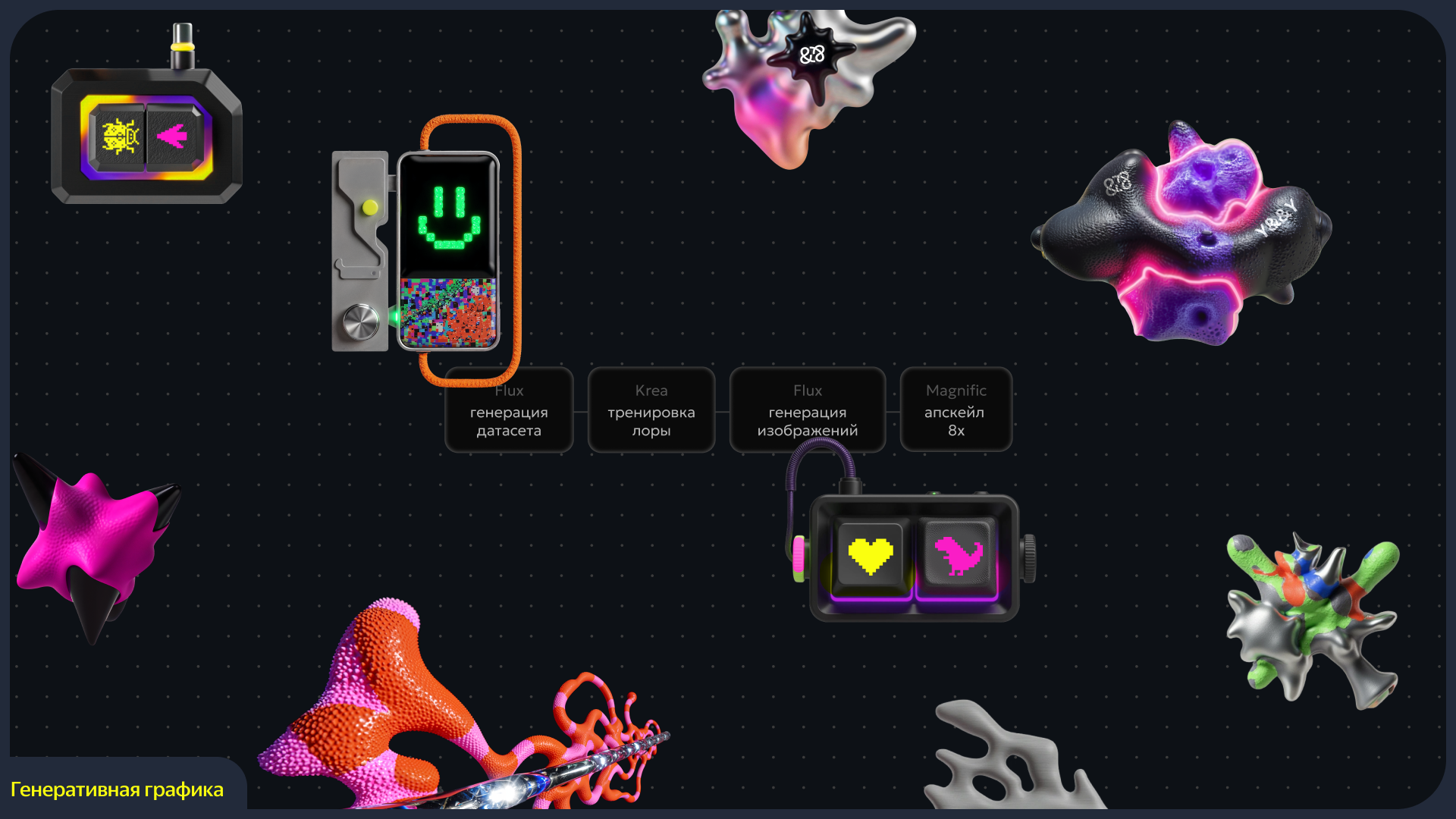 Большая часть материалов была создана с помощью AI. Благодаря LoRA (Low-Rank Adaptation) — метода дообучения нейросетей, который фиксирует визуальную ДНК бренда, нам удалось создать уникальный и узнаваемый стиль всех коммуникаций.