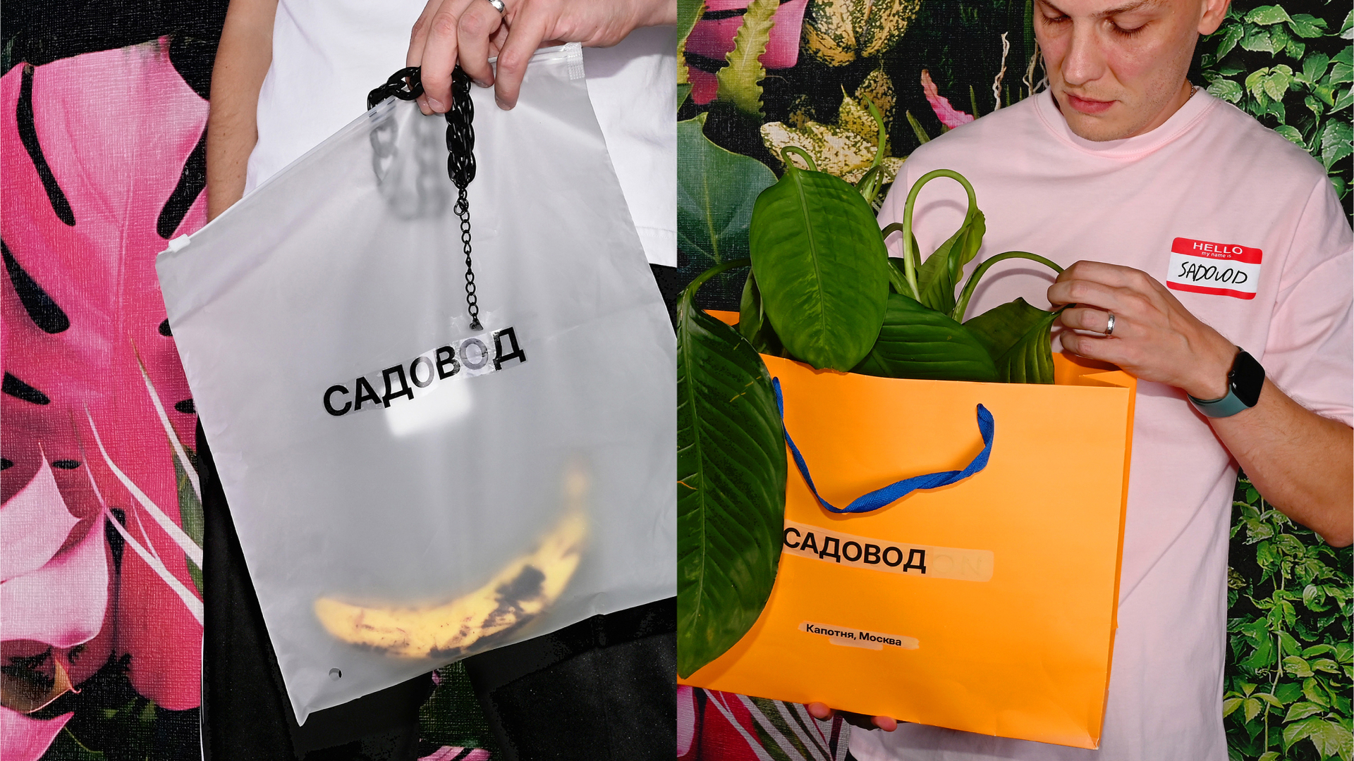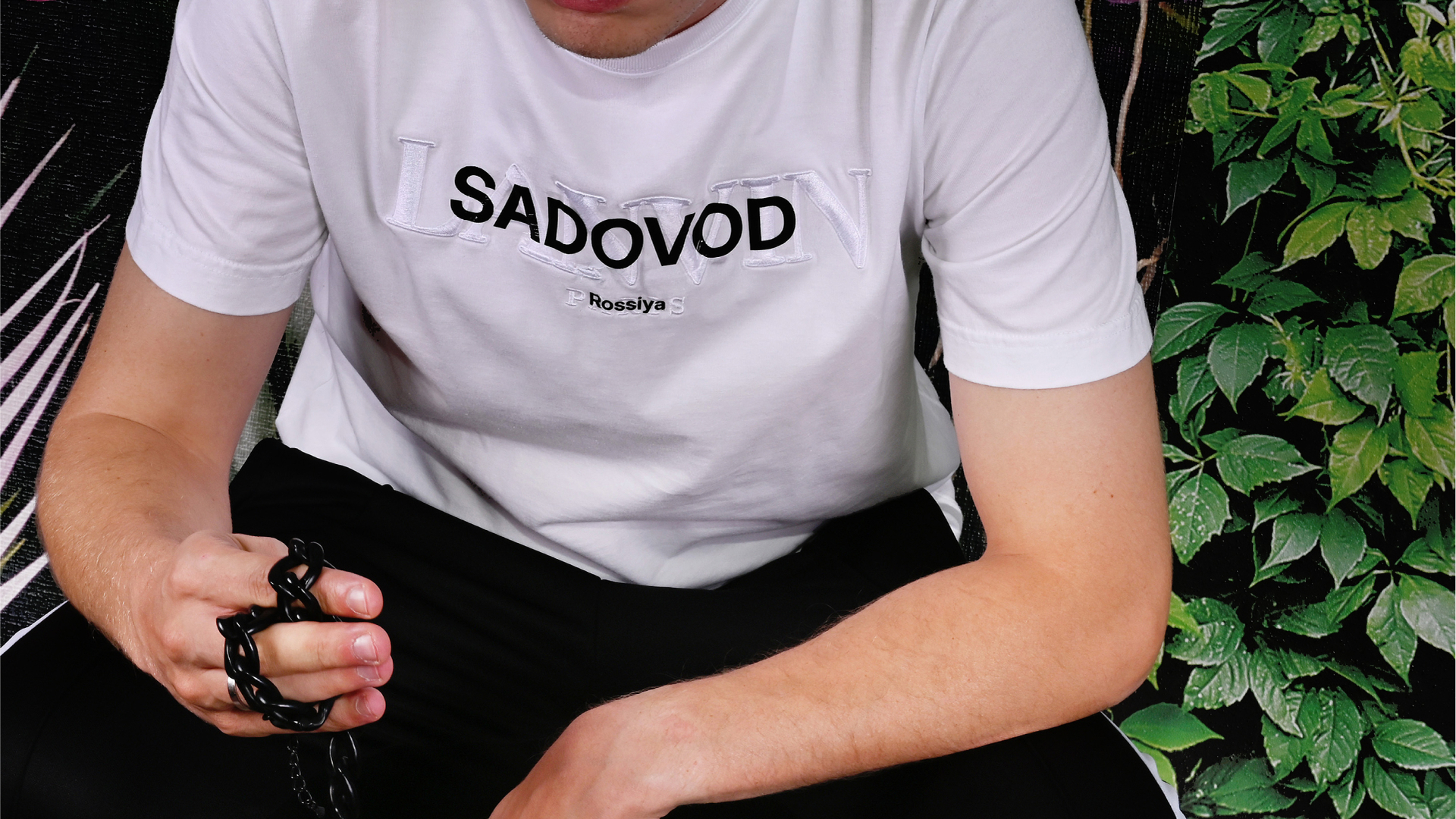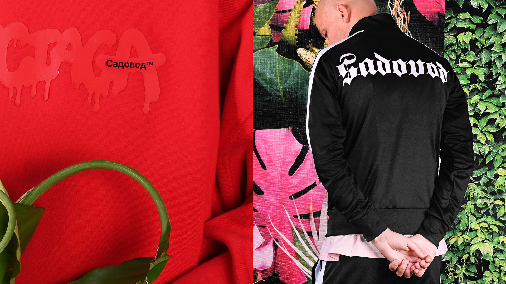 Мы купили на рынке Садовод большой пакет поддельных вещей самых кричащих брендов, а потом аккуратно заменили все поддельные надписи, лейблы и ярлыки на правдивые. Получился новый неподдельный бренд одежды «Садовод», который и стал нашим фирменным мерчем.