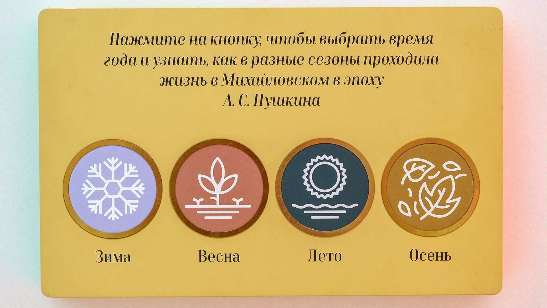Арт-инсталляция «Дуб» является частью большой новой экспозиции «Эмоции природы, природа эмоций. Пушкинский литературный ландшафт», размещённой в Научном центре знаменитого Пушкинского Заповедника.