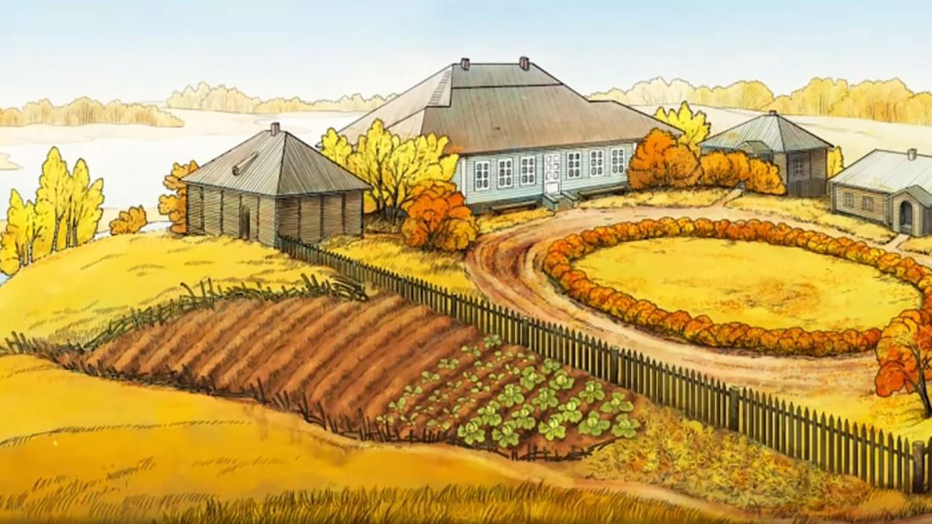 «Дуб» расположен в центре зала, где представлено 4 времени года в усадьбе. На панорамном экране слева поверх графического изображения панорамы усадьбы проецируется анимация жизни усадьбы. Посетитель может менять времена года, нажимая на соответствующие кнопки управления. Вместе с анимацией меняется подсветка зала и листвы, звуковое сопровождение.