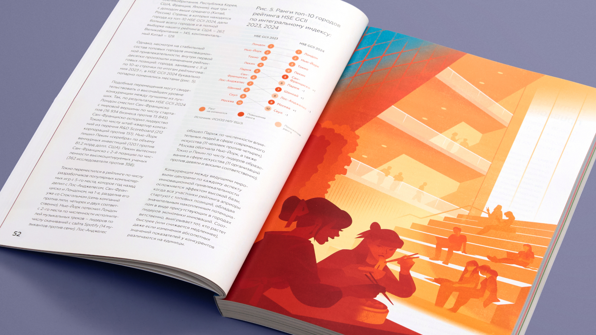 Книга оформлена как визуальный справочник: более 200 городов, 90 показателей, десятки графиков и таблиц — всё это дополнено выразительными цифровыми иллюстрациями, каждая из которых передаёт атмосферу мегаполисов будущего.