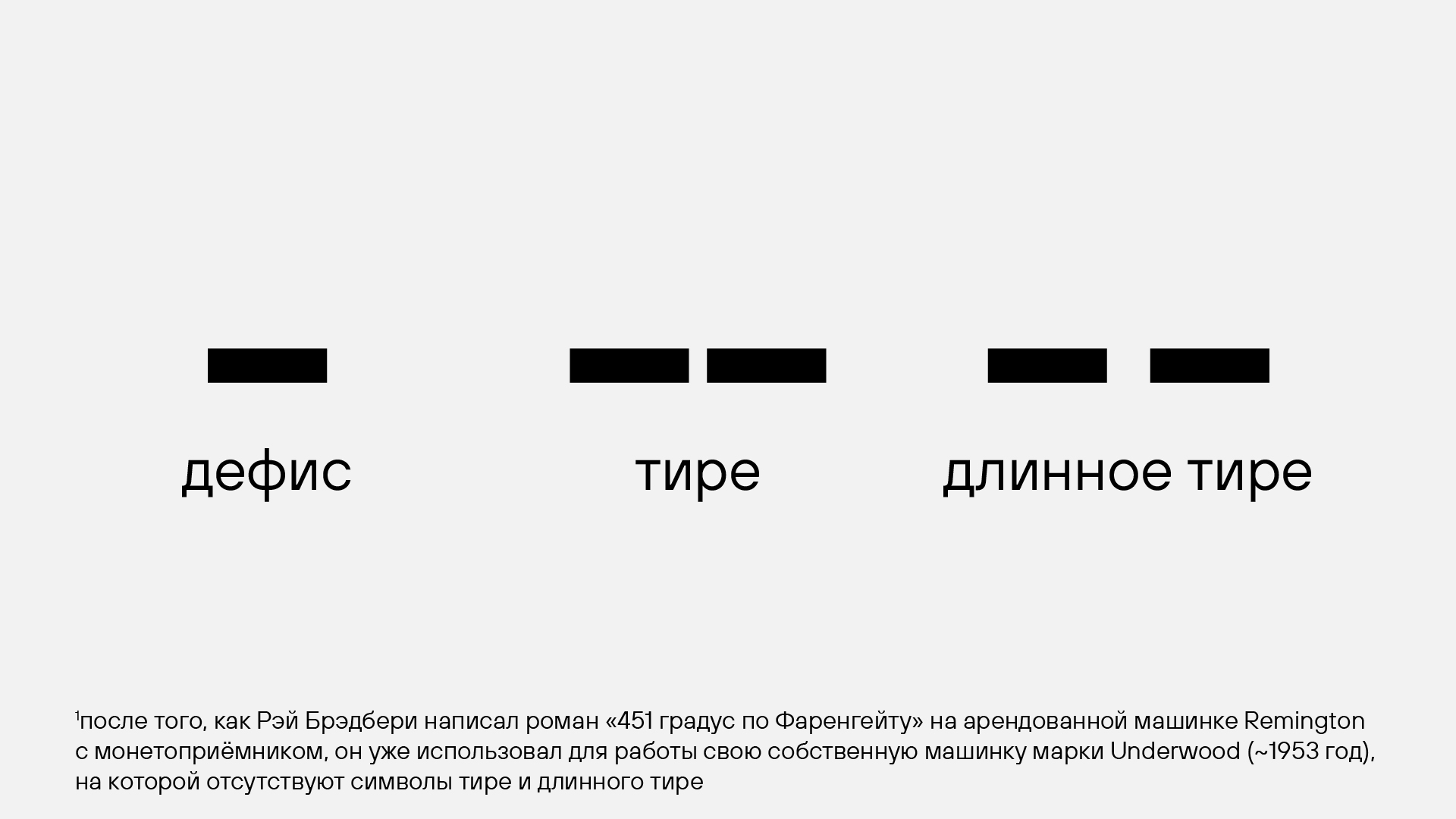 Рэй Брэдбери не воспринимал пишущую машинку просто как техническое устройство, для него она была важной частью творческого процесса, источником ощущений и вдохновения. Регулярно он говорил о том, что за клавиатурой нельзя мыслить холодным умом, нужно чувствовать — именно чувства играют главную роль в создании настоящего искусства.