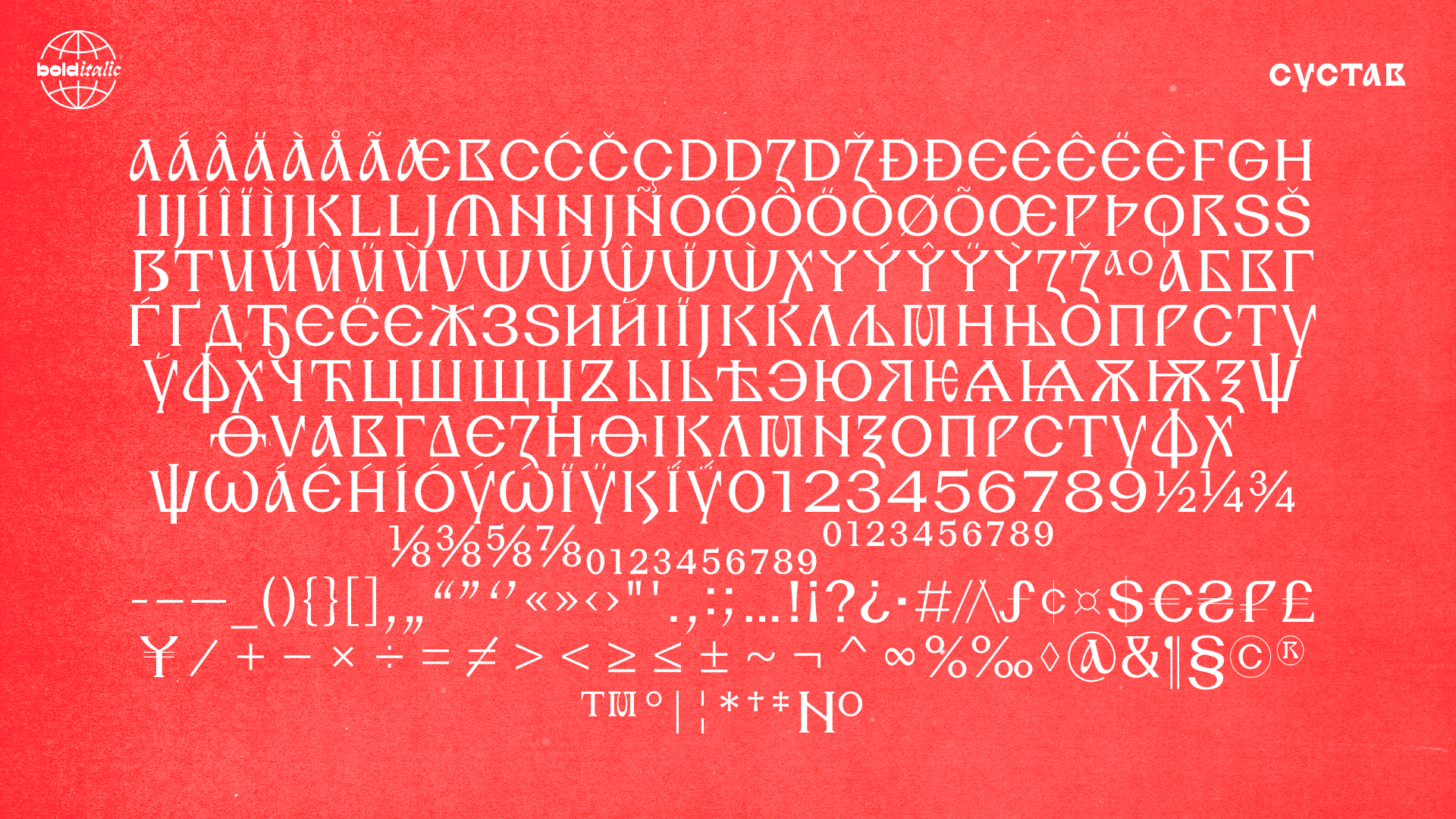 Знаковый состав поддерживает славянские кириллические языки, а также языки западной Европы.