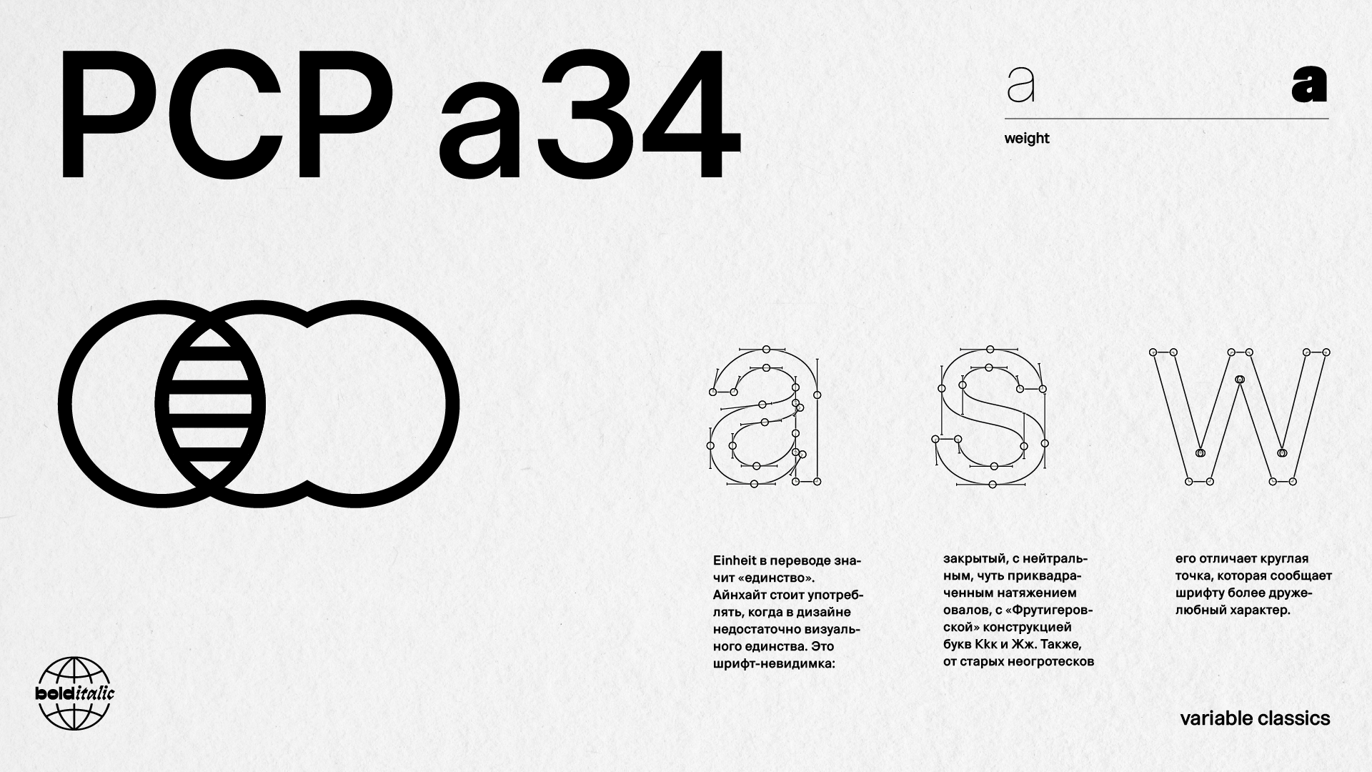 На момент создания — это шрифт-невидимка: закрытый, с нейтральным, чуть приквадраченным натяжением овалов, с «Фрутигеровской» конструкцией букв Kkк и Жж. Также, от старых неогротесков его отличает круглая точка, которая сообщает шрифту более дружелюбный характер.