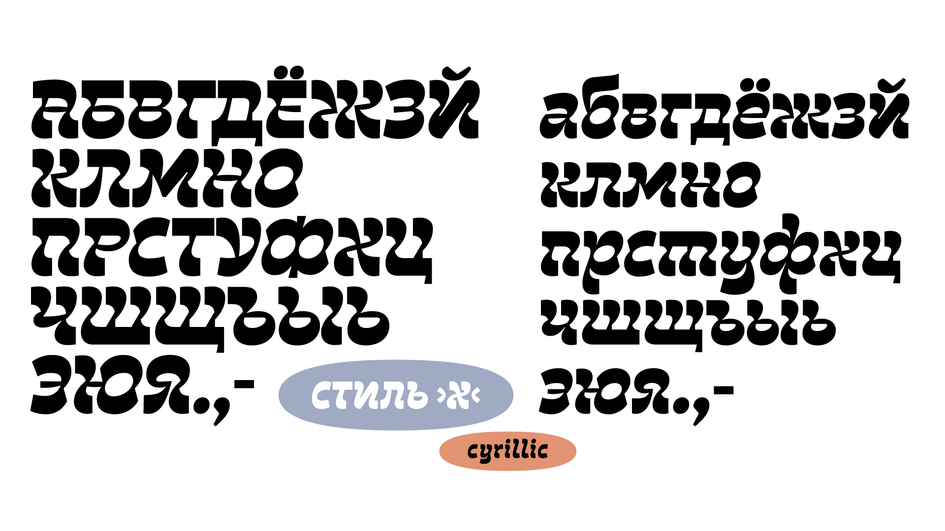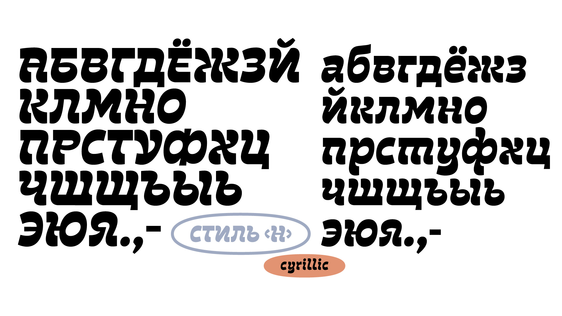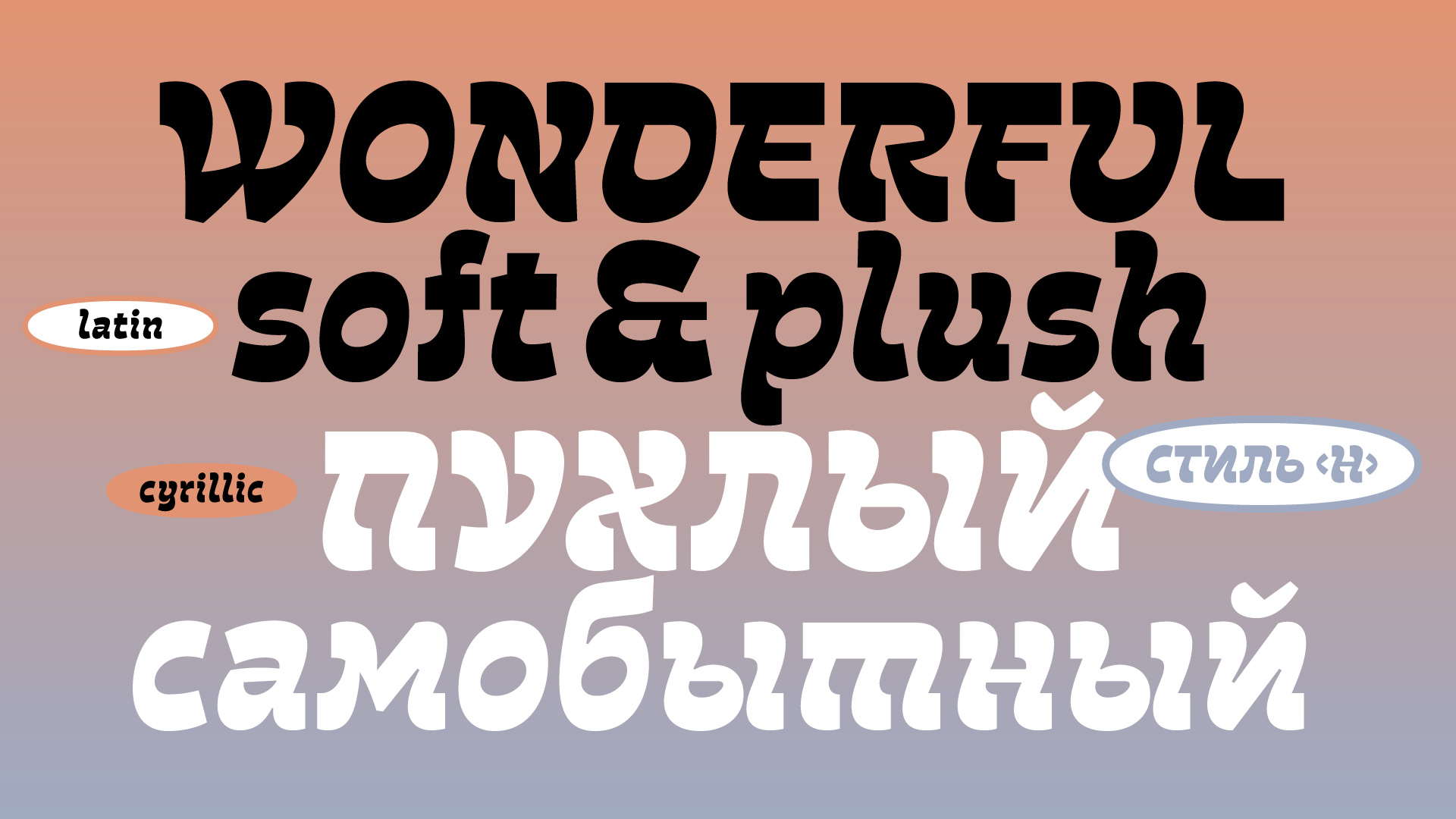 Сейчас Plumplush это два шрифта: Style X и Style Н, — с разницей в талии и степени акциденции. Style X для крупного кегля выше 48 pt. Его можно назвать шрифтом «от кутюр», потому что он производит впечатление. Второй, Style Н — как «пред-а-порте» или готовое платье для книги, периодики и упаковки. Хорошо сработает и в крупном кегле и небольшом абзаце от 24 pt.