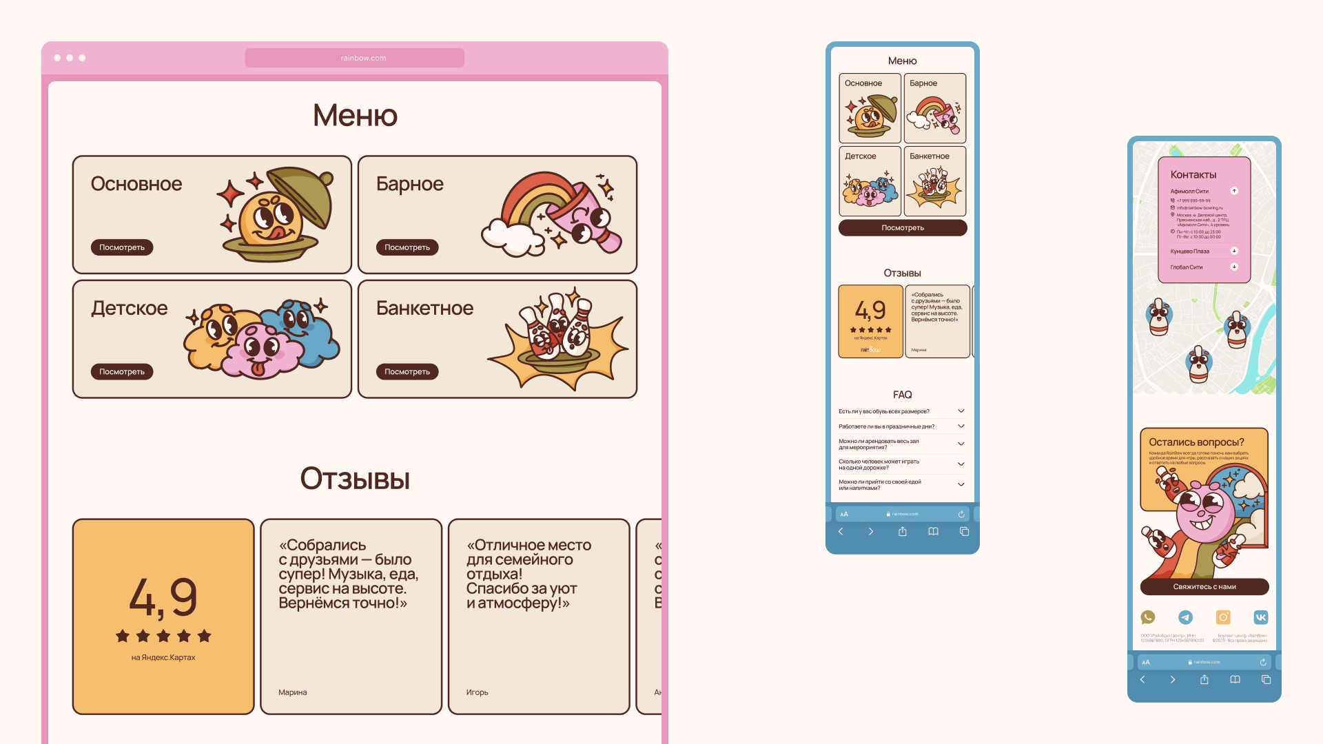 Rainbow: айдентика и сайт боулинг-клуба