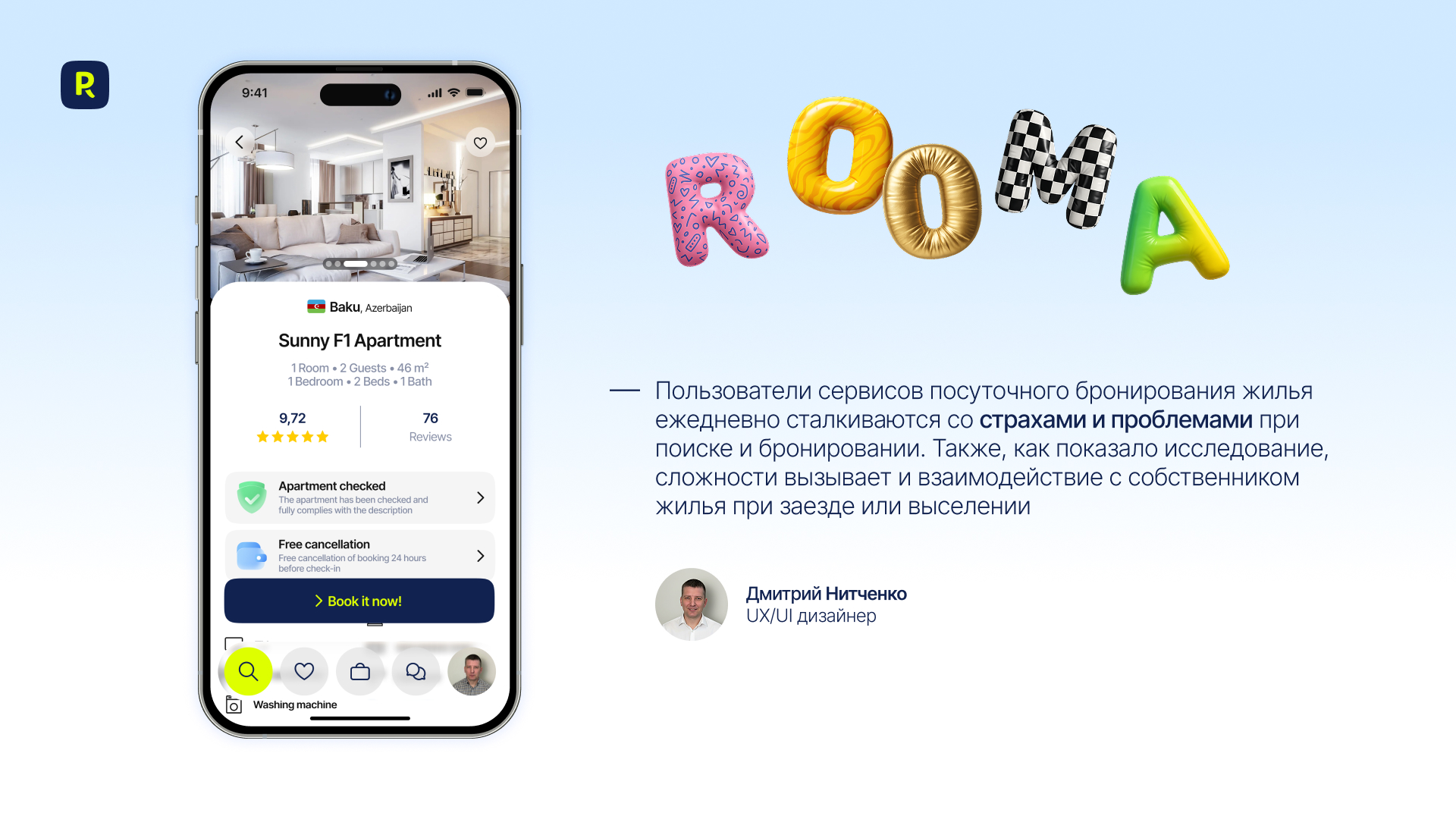 Rooma — инновационное приложение для посуточного бронирования.