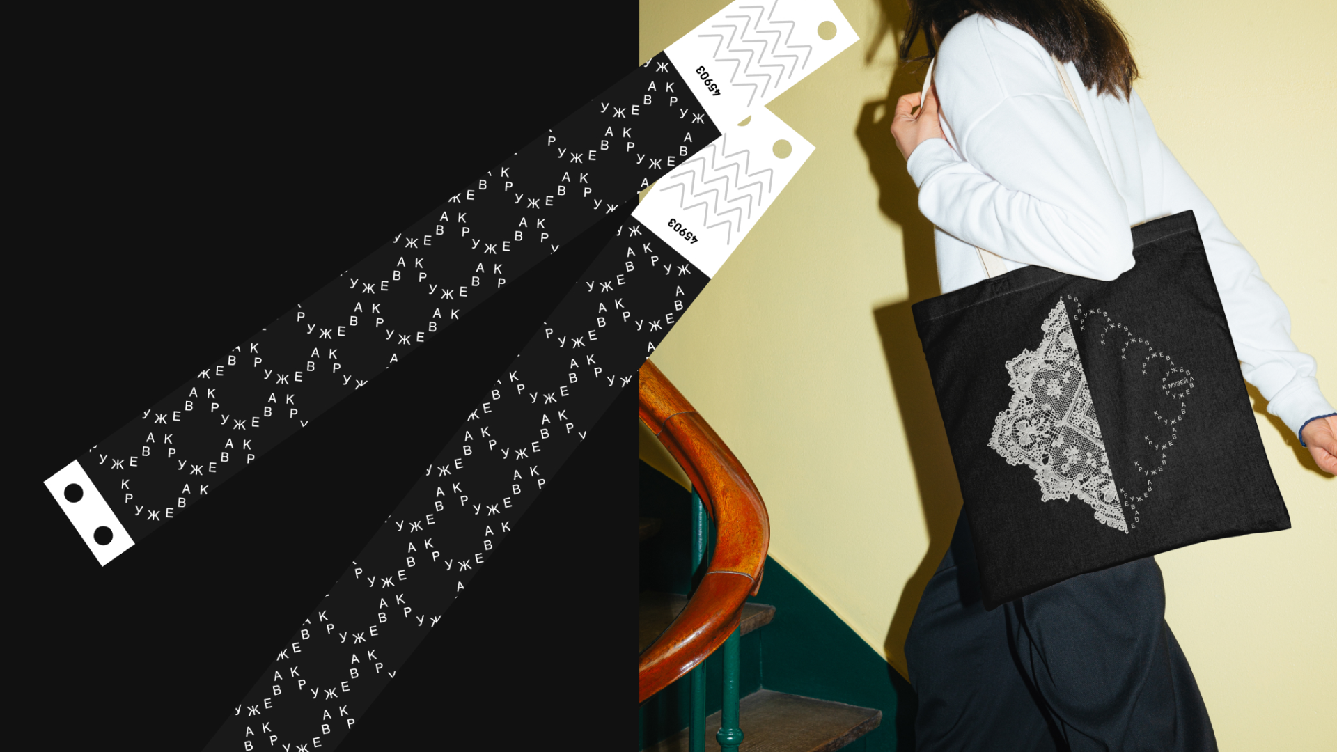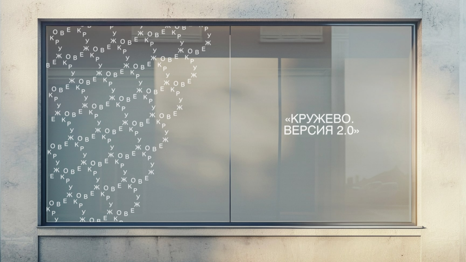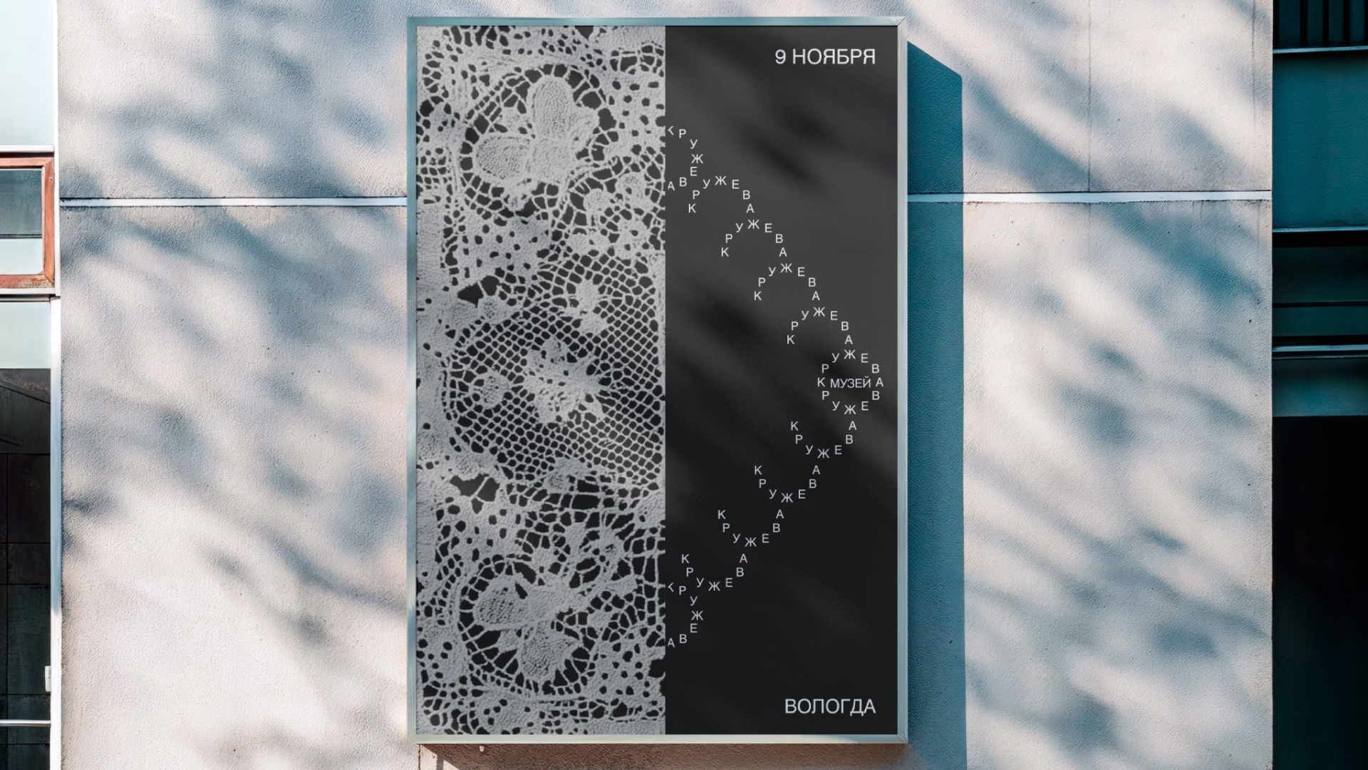 Типографика используется как орнаментальная живая структура — её ритм и модульность формируют визуальный узор, напоминающий плетение кружева.
