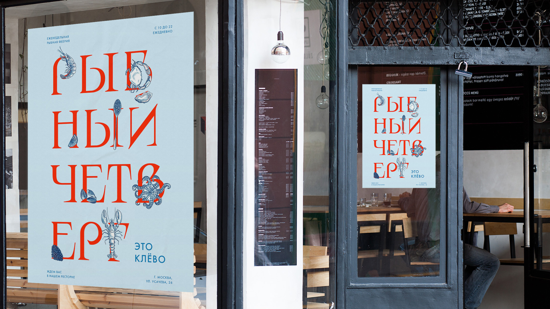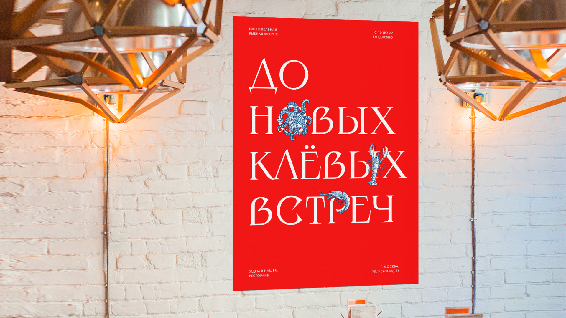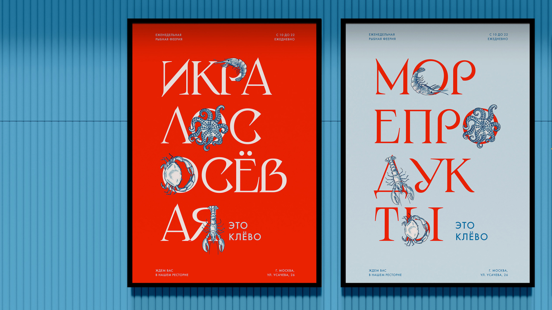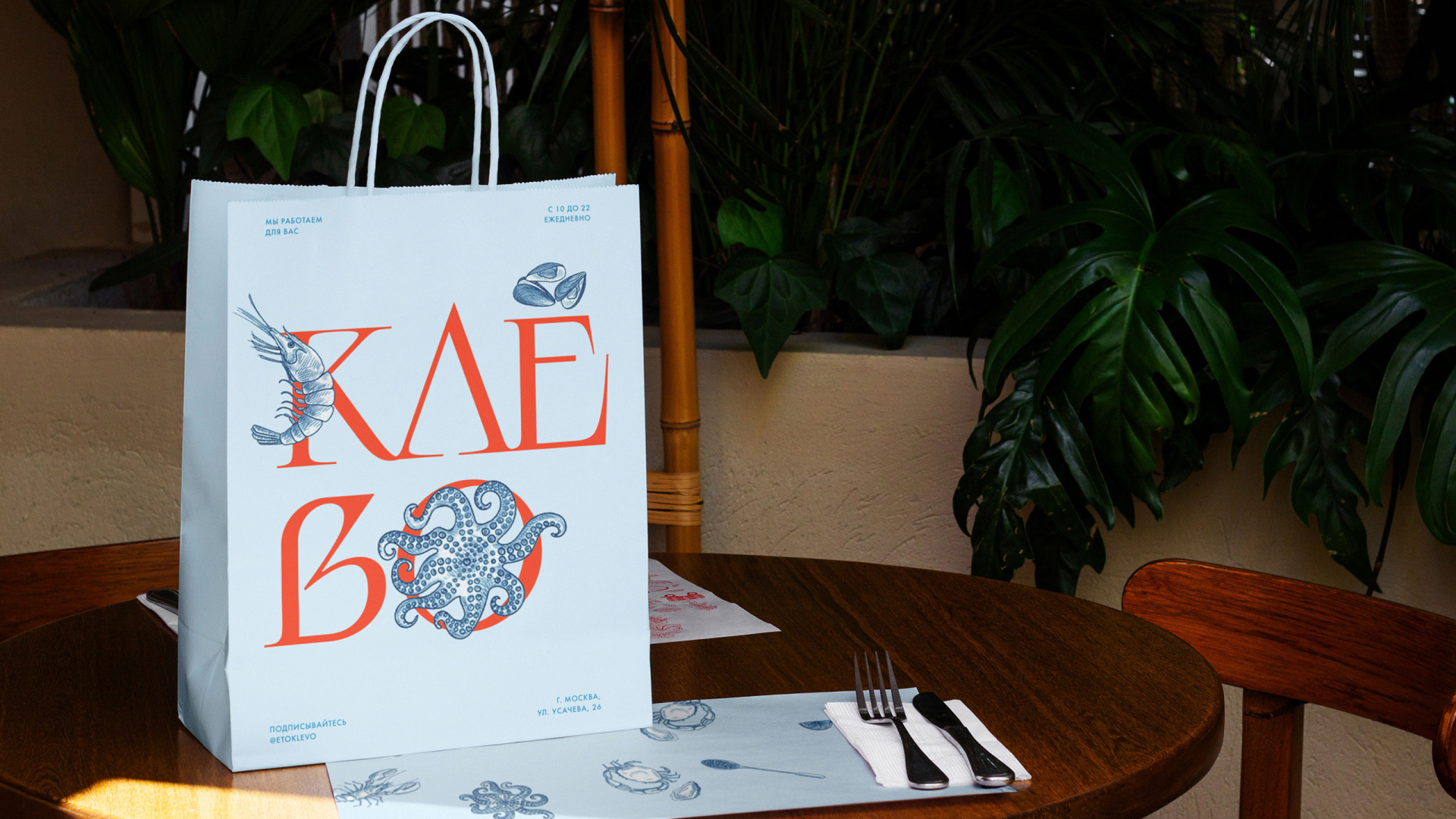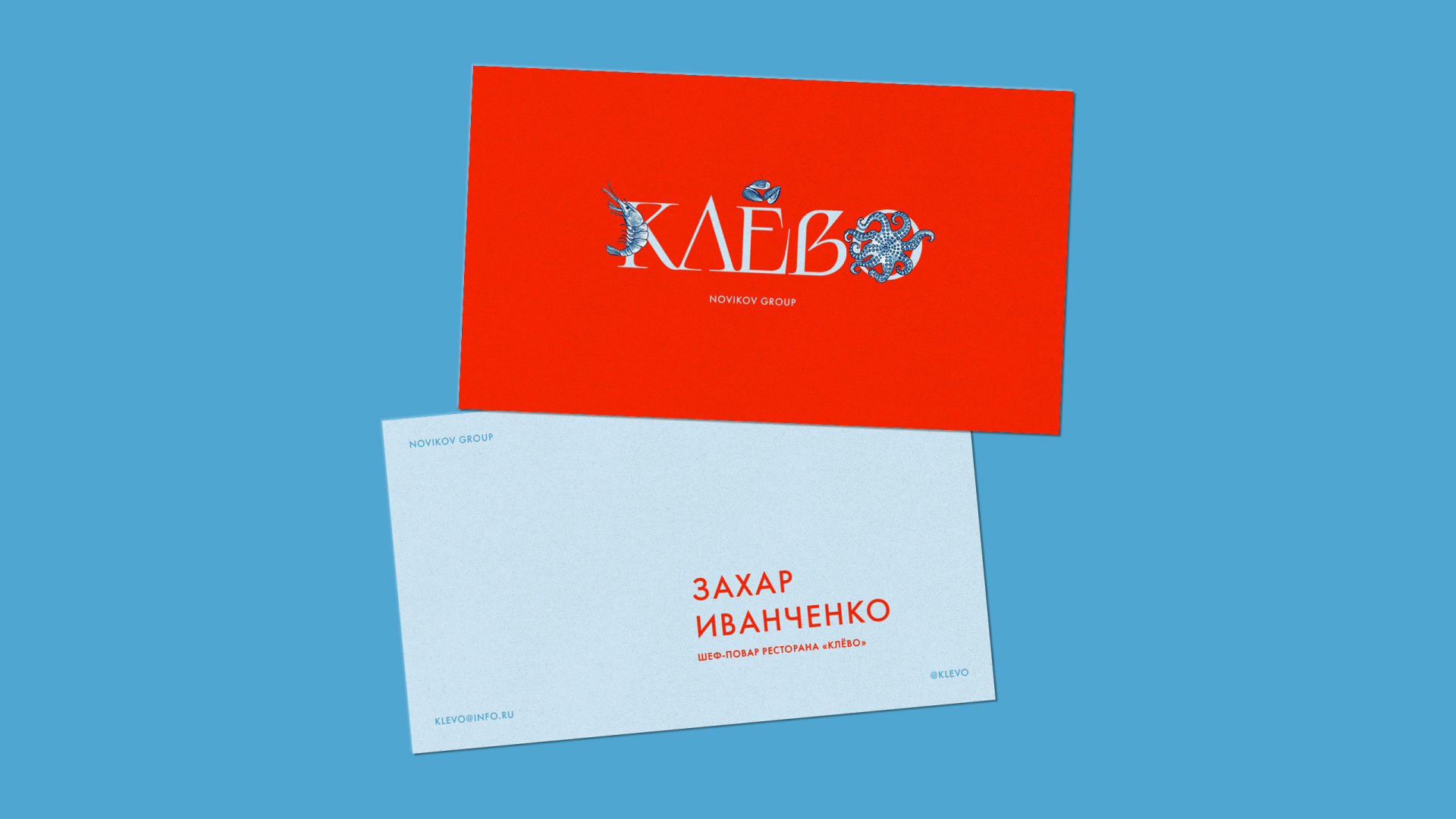 Ре«Клёво» — семейный рыбный ресторан от Novikov Group. В рамках ребрендинга ресторана был создан дружелюбный визуальный образ, подчеркивающий его семейную концепцию. Причудливый шрифт и теплый копирайтинг создают атмосферу сказки для гостей всех возрастов, а яркие иллюстрации морских жителей подчёркивают специализацию ресторана на блюдах морской кухни.