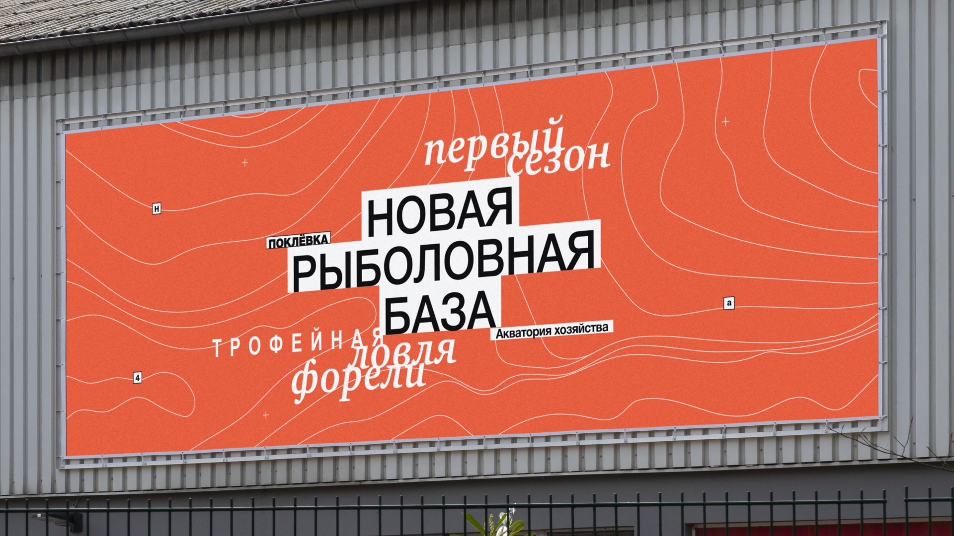 Основой концепции является визуальная рифма текстуры форели и карты глубин водоемов, выделяя рыболовную базу как главное место ловли.