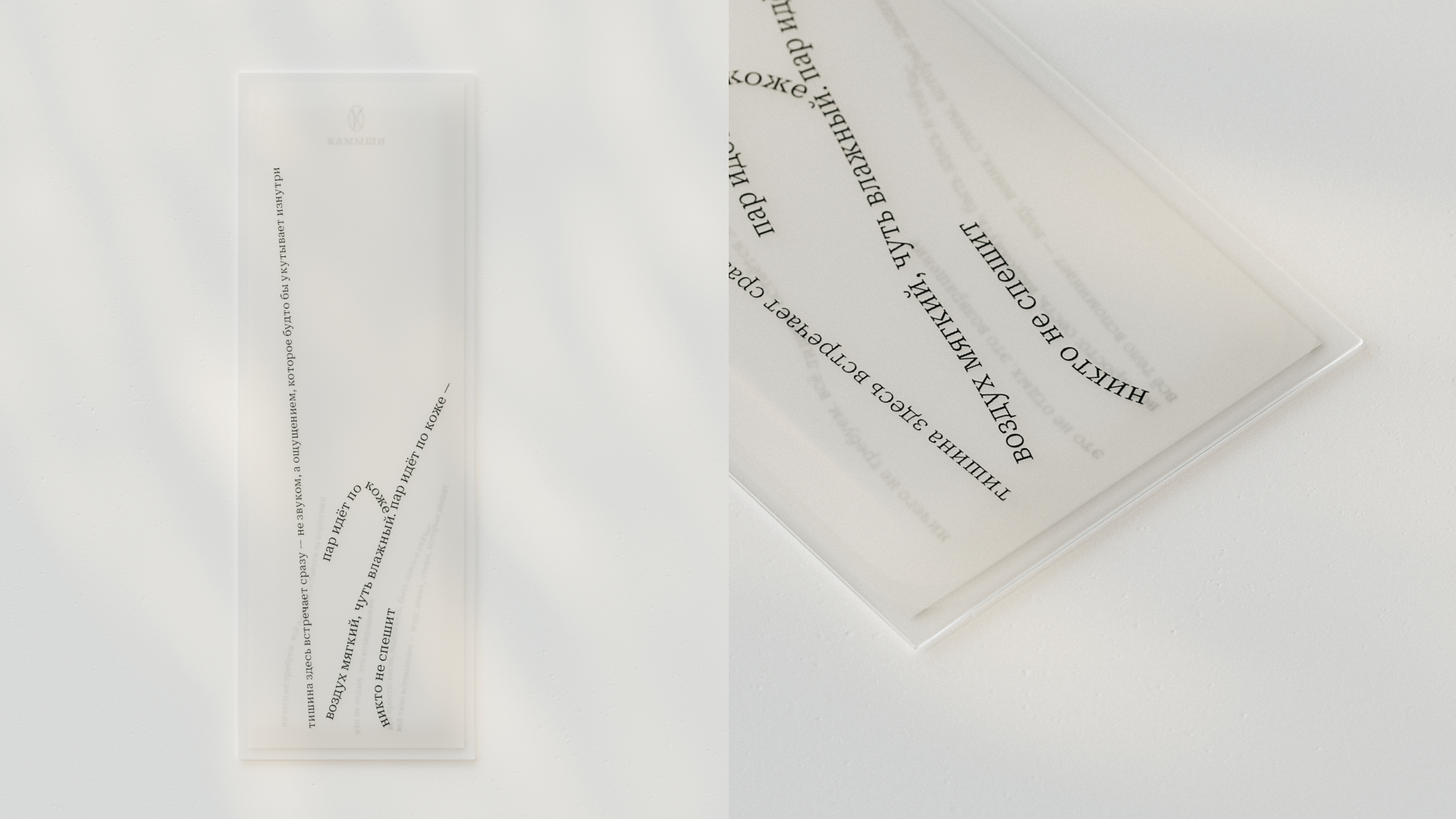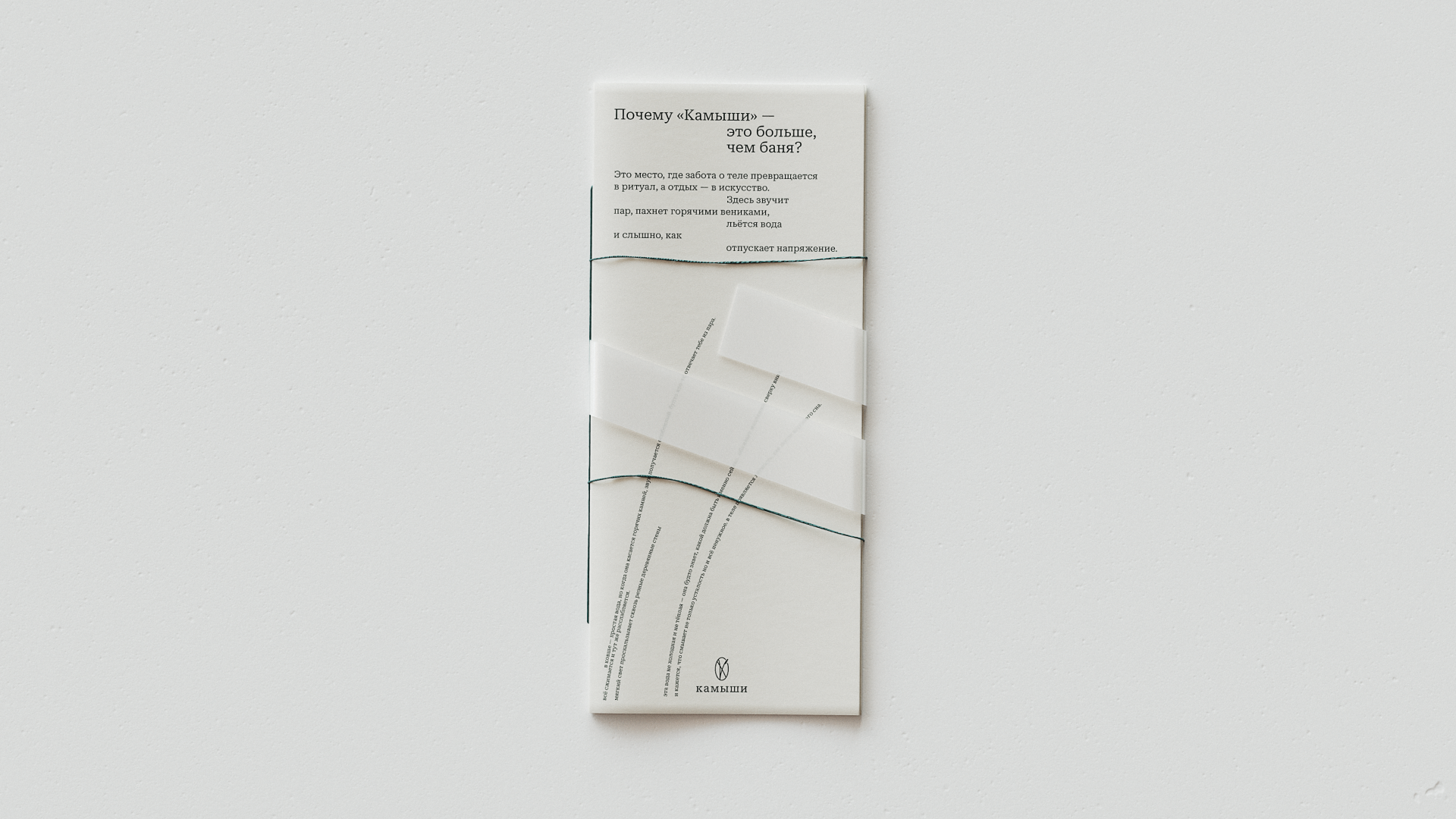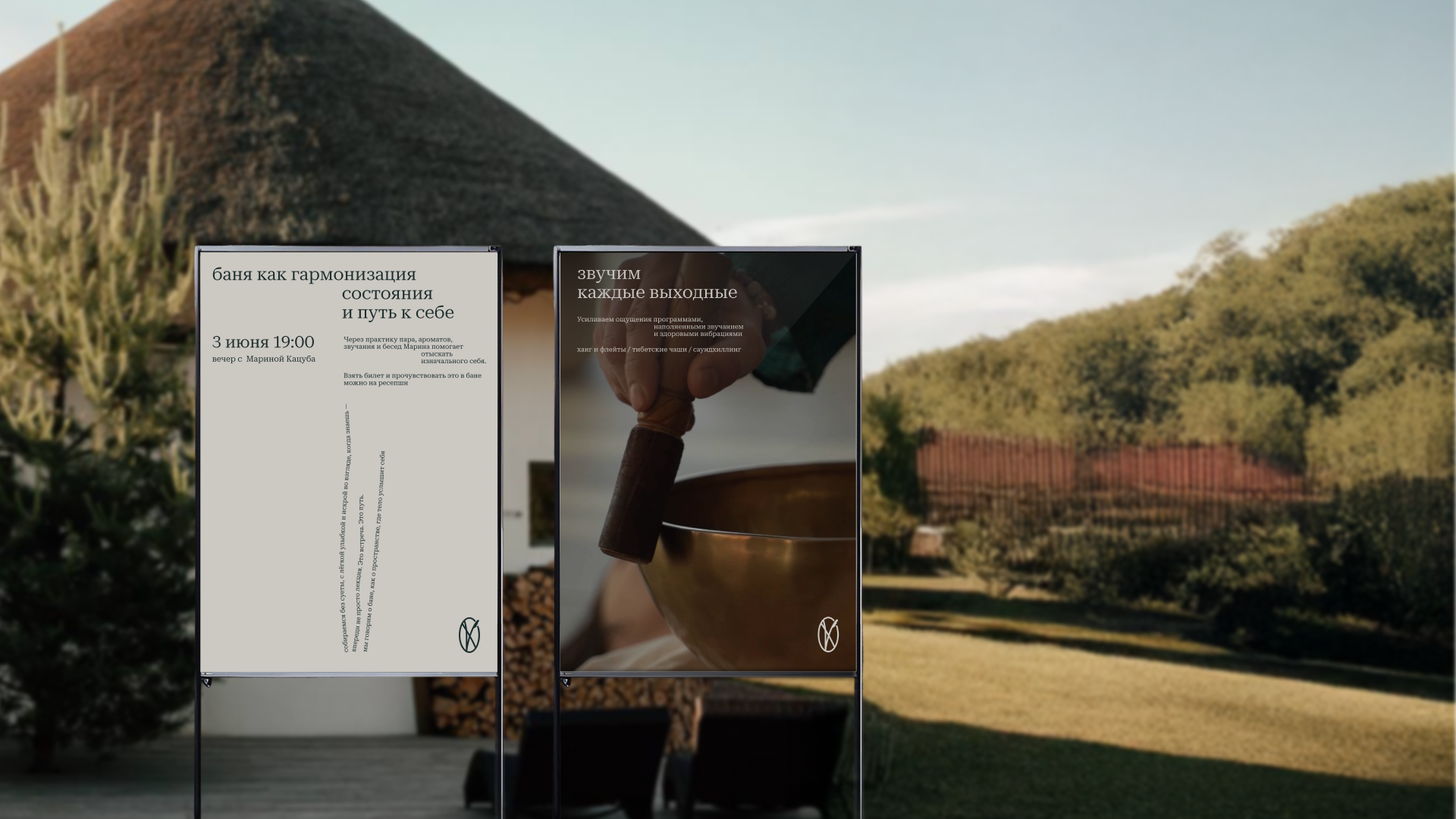 Новая айдентика была разработана, чтобы подчеркнуть этот новый ориентир на духовный отдых. В качестве метафоры — конструкция камышей, в которые вписываются те фразы, истории пармастеров, которые произносятся на парениях, чтобы ввести гостей в состояние спокойствия и внутренней тишины.