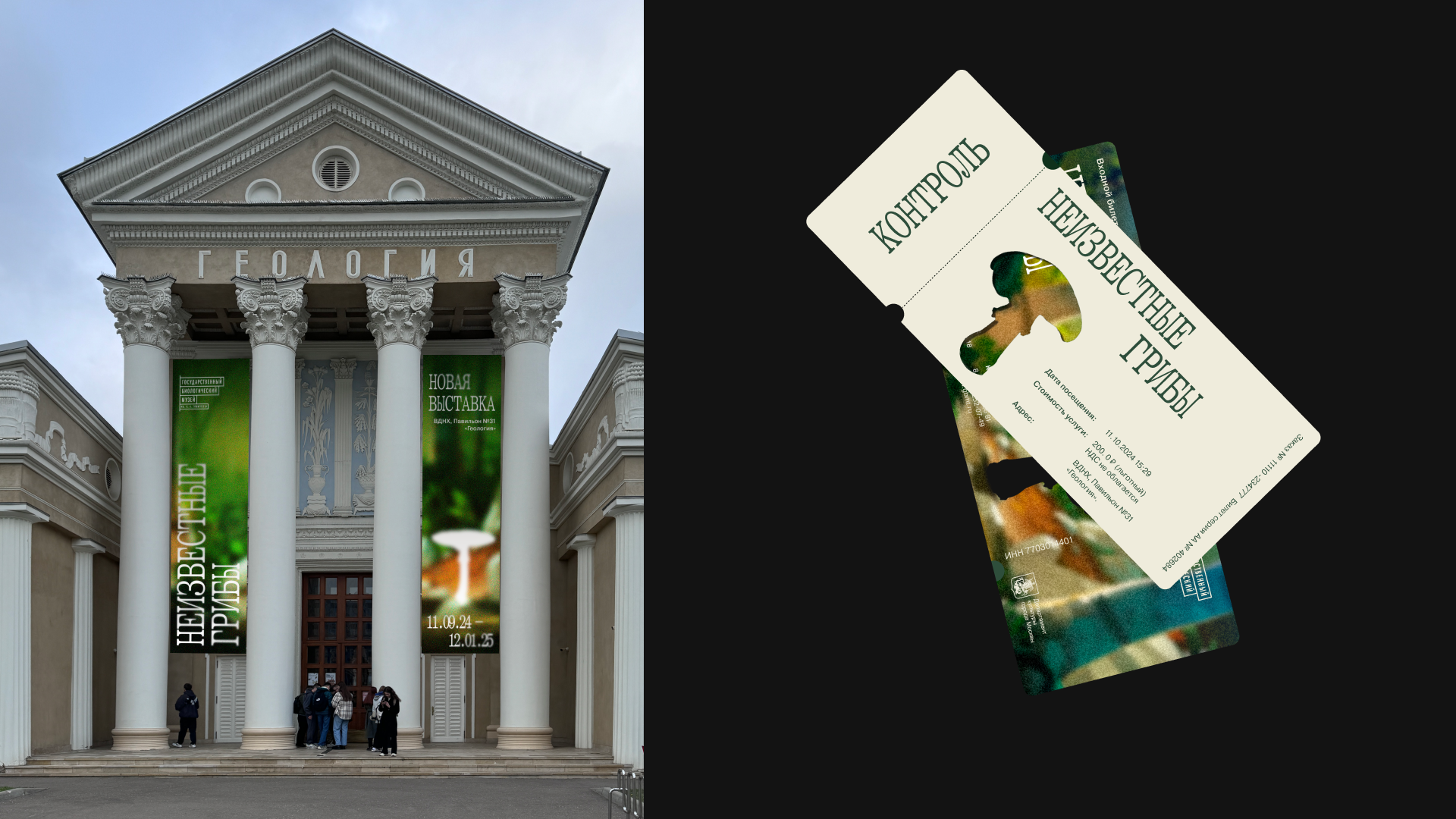 Выставка проходит на ВДНХ в павильоне музея К. А. Тимирязева. На ней представлены уникальные муляжи грибов из коллекций Биомузея. Здесь можно узнать о разнообразии грибной фауны, в том числе о тех грибах, на которые люди часто не обращают внимания.