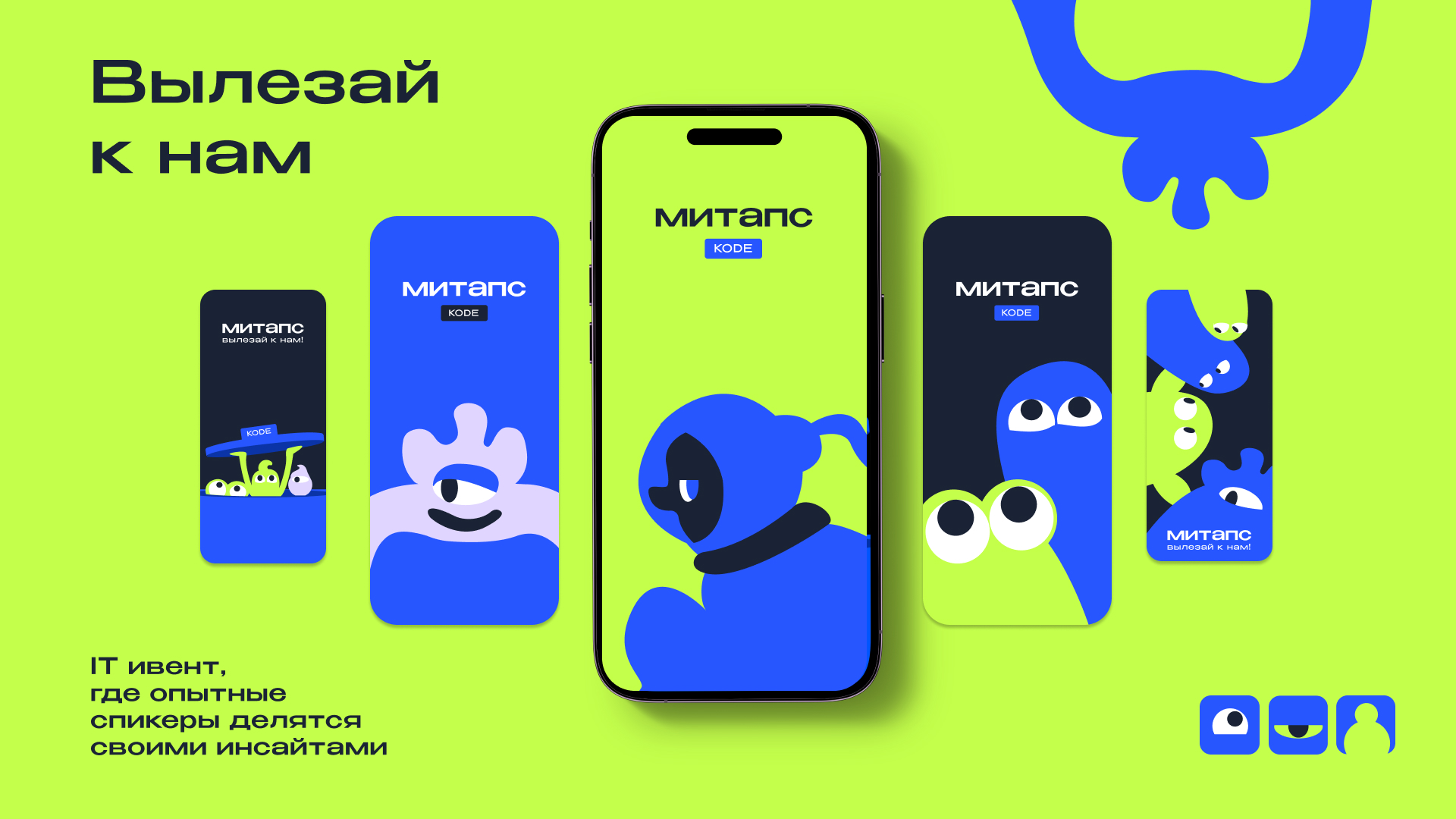 Митапс, ранее «MEET UP’S»; — ивент, который проводит компания KODE в своем офисе, куда приглашаются опытные спикеры с передовых компаний и с KODE, в том числе. Профи делятся своими знаниями и инсайтами с аудиторией, отвечают на каверзные вопросы публики.