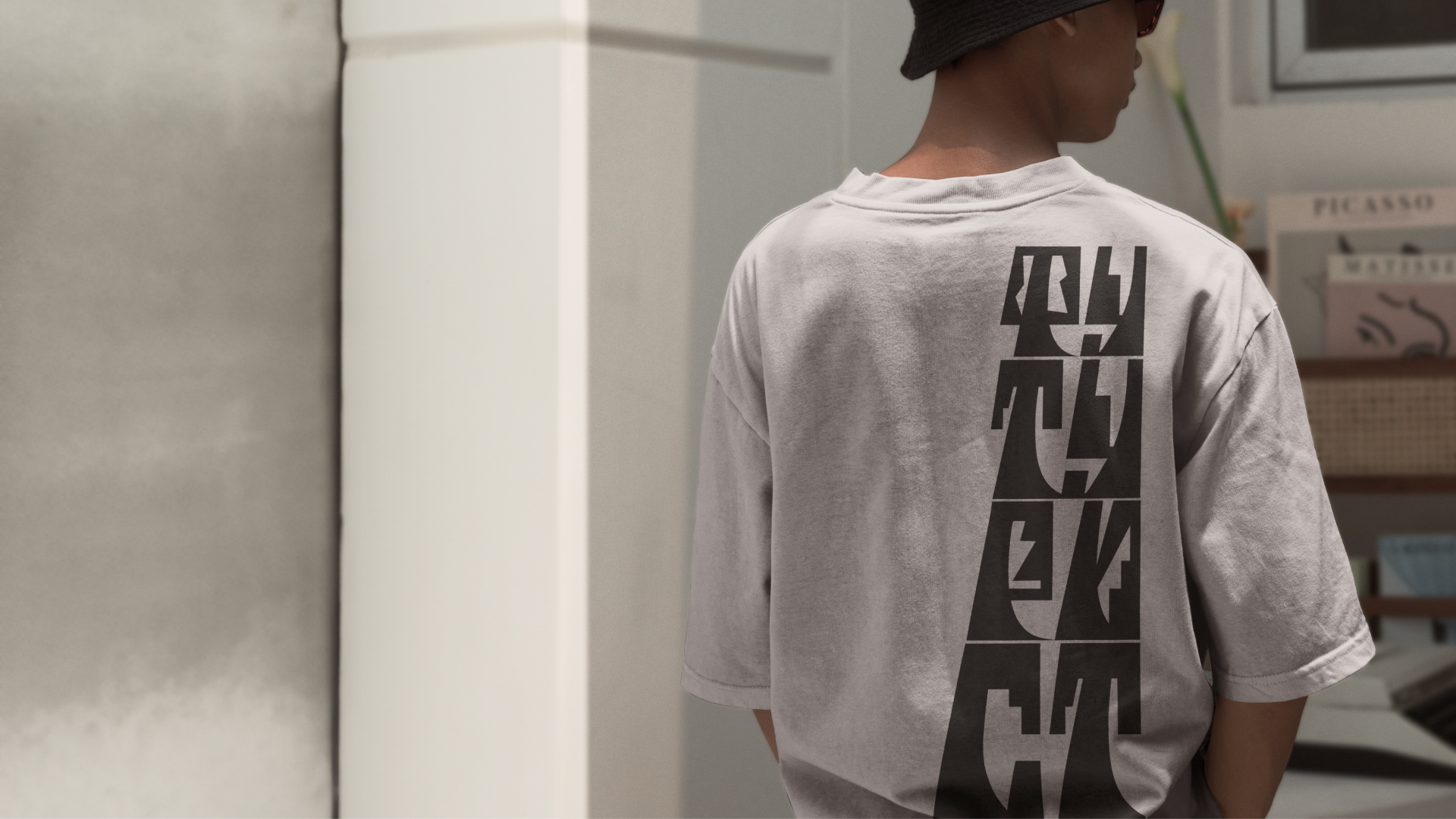 Айдентика включает в себя разработку фирменного шрифта, работу с проектированием пространства и системой коммуникации.