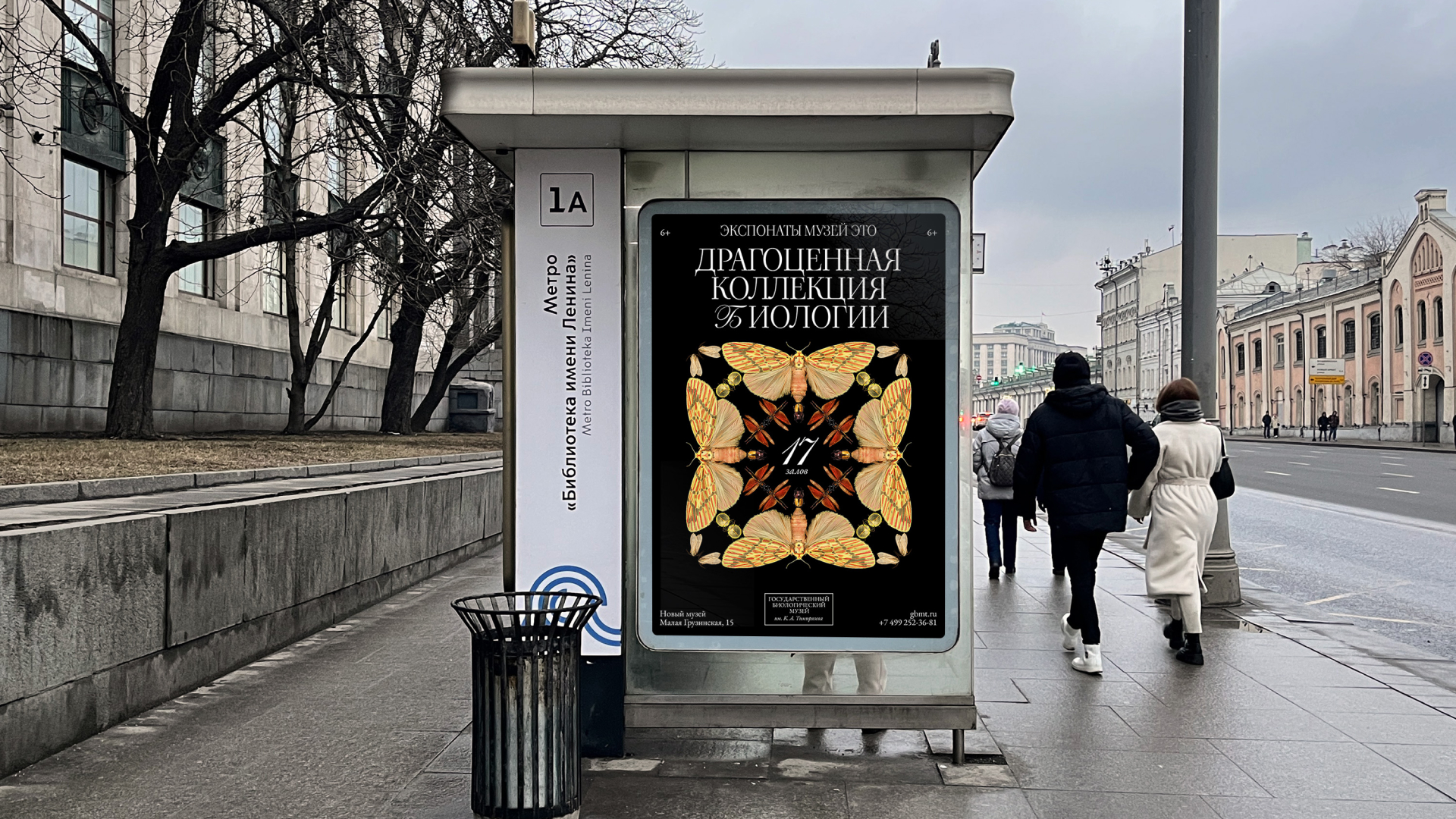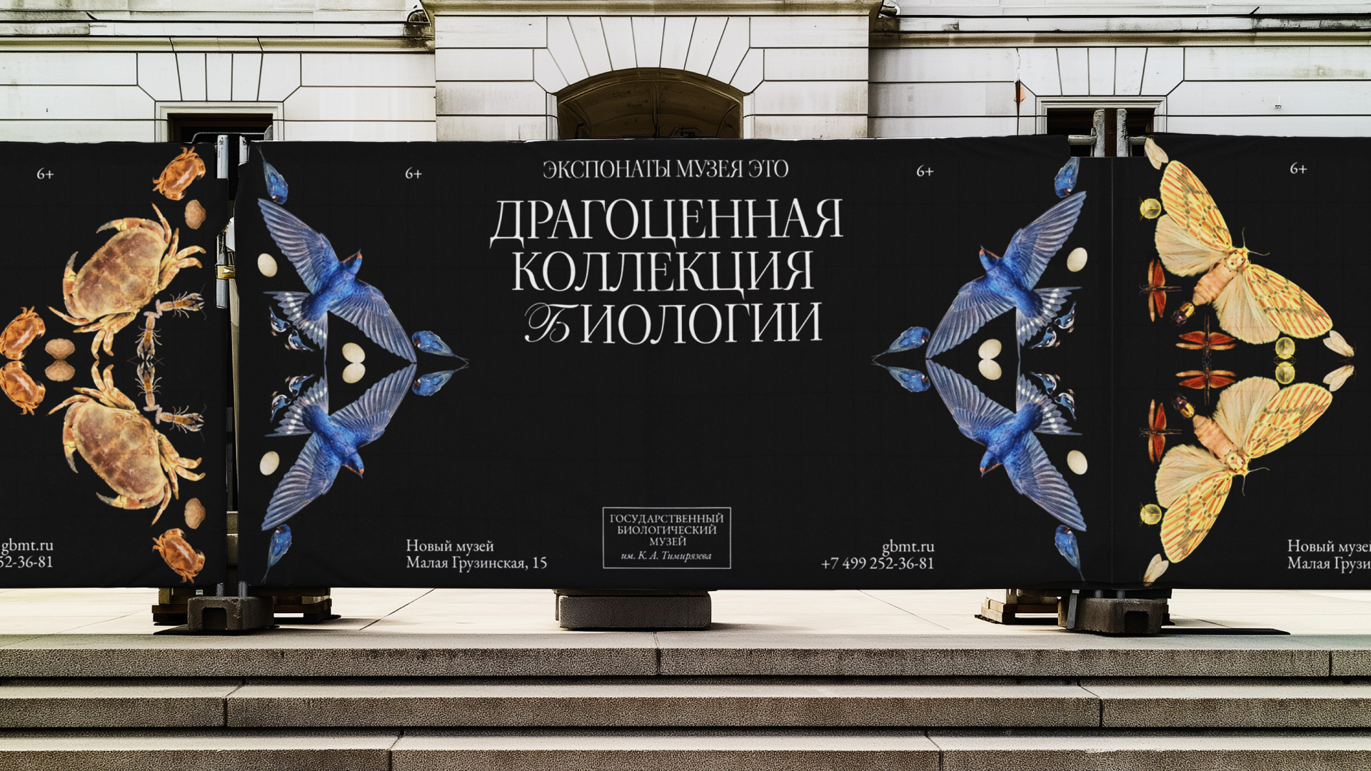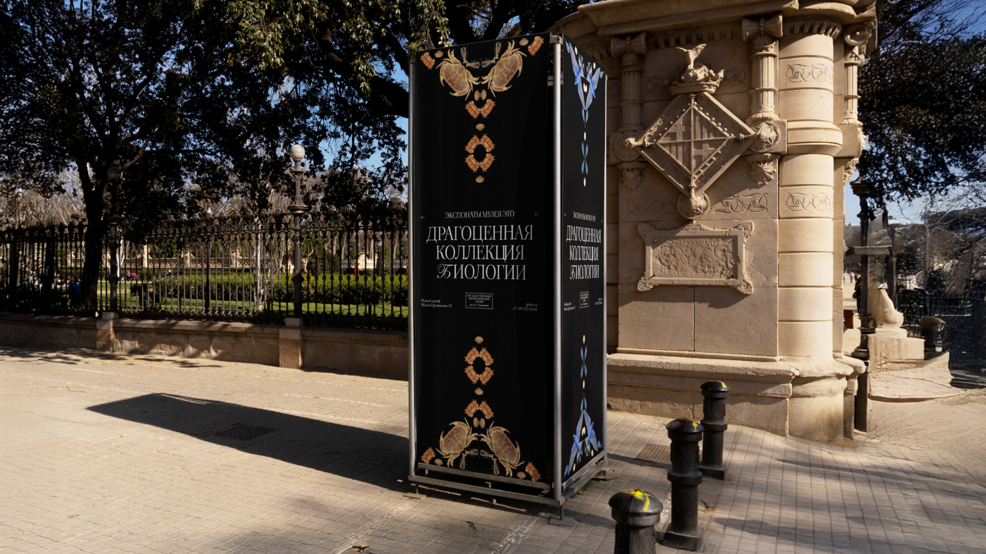 Ключевая идея новой айдентики: экспонаты музея — это природные сокровища, драгоценная коллекция биологии. Калейдоскопические композиции, напоминающие ювелирные изделия, подчёркивают уникальность и изящество форм. Такой графический приём раскрывает разнообразие и хрупкую красоту биологических объектов.