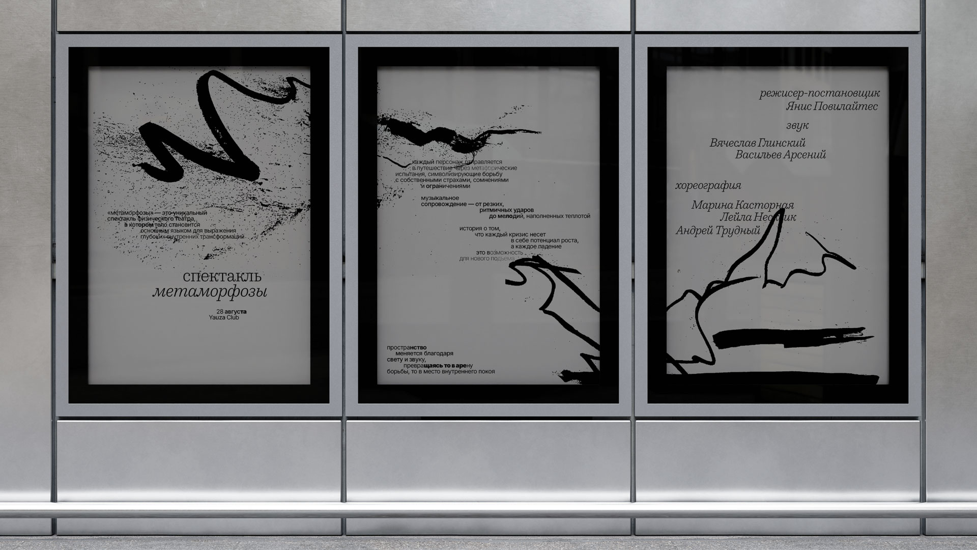 Типографика отходит на второй план, подчеркивая: эмоции важнее слов. Шрифт имитирует угольное письмо, «слова» движутся по сетке как живое общение — спонтанное, с паузами и дыханием. Дополнительным элементом стала калька — на ней билеты и зин о контакте с другими. Материал стал метафорой уязвимости человеческих эмоций.