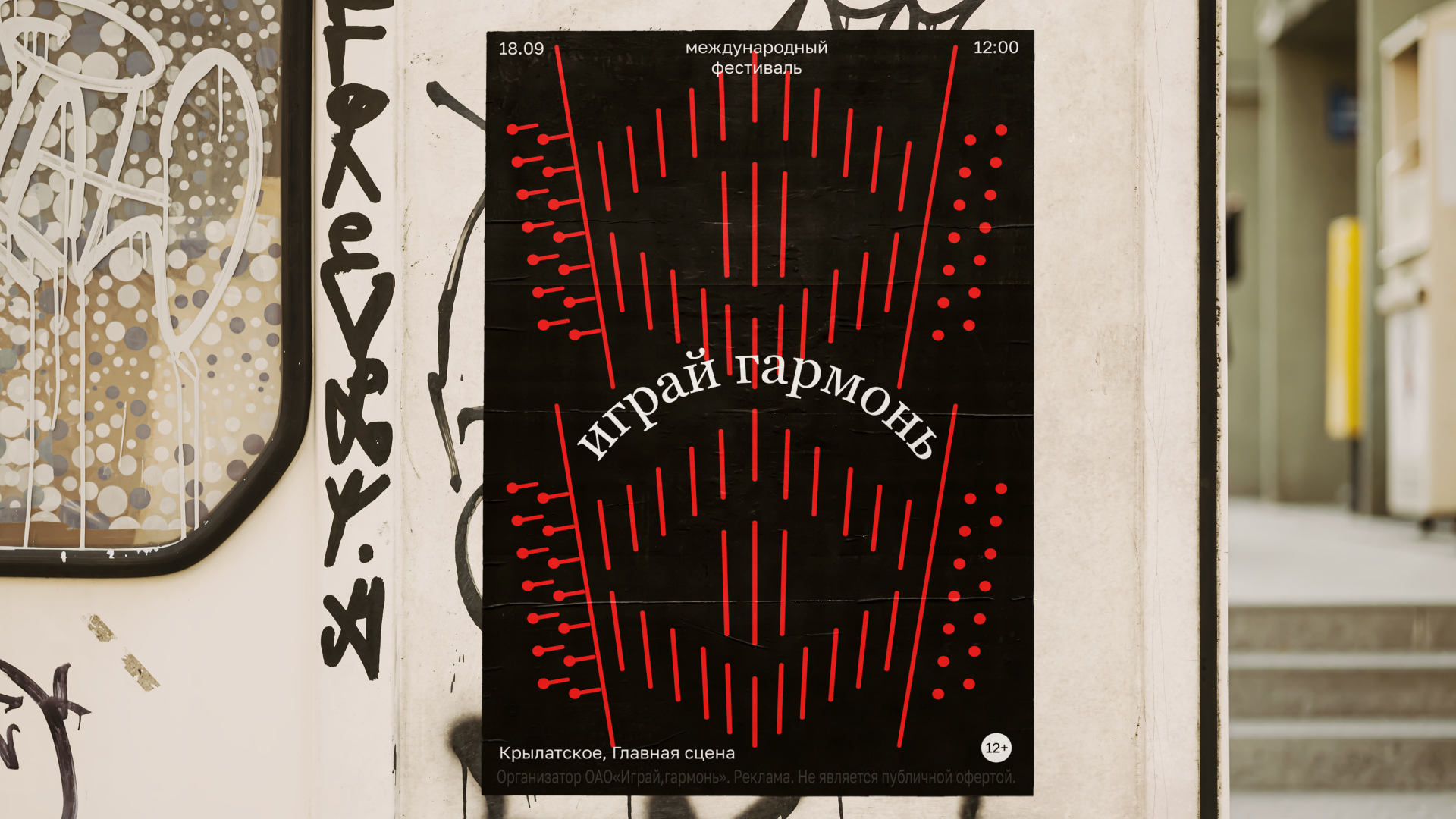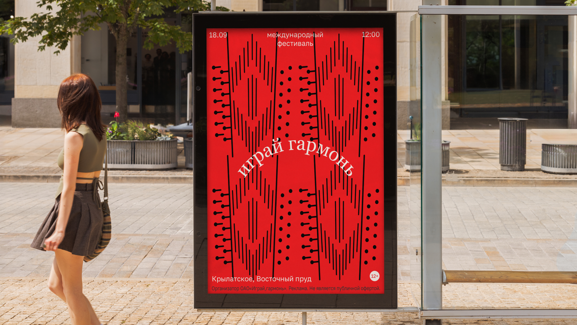 «Играй гармонь» — международный фестиваль народных песен и музыки. Народные гуляния, родные песни под гармонику и самобытная атмосфера русского народного творчества! Визуальный стиль фестиваля — это современная интерпретация народной эстетики и самой формы гармонии. Гармонь оживает, играет и растягивает меха. Все это создает ощущение настоящего, живого праздника, идущего от сердца.