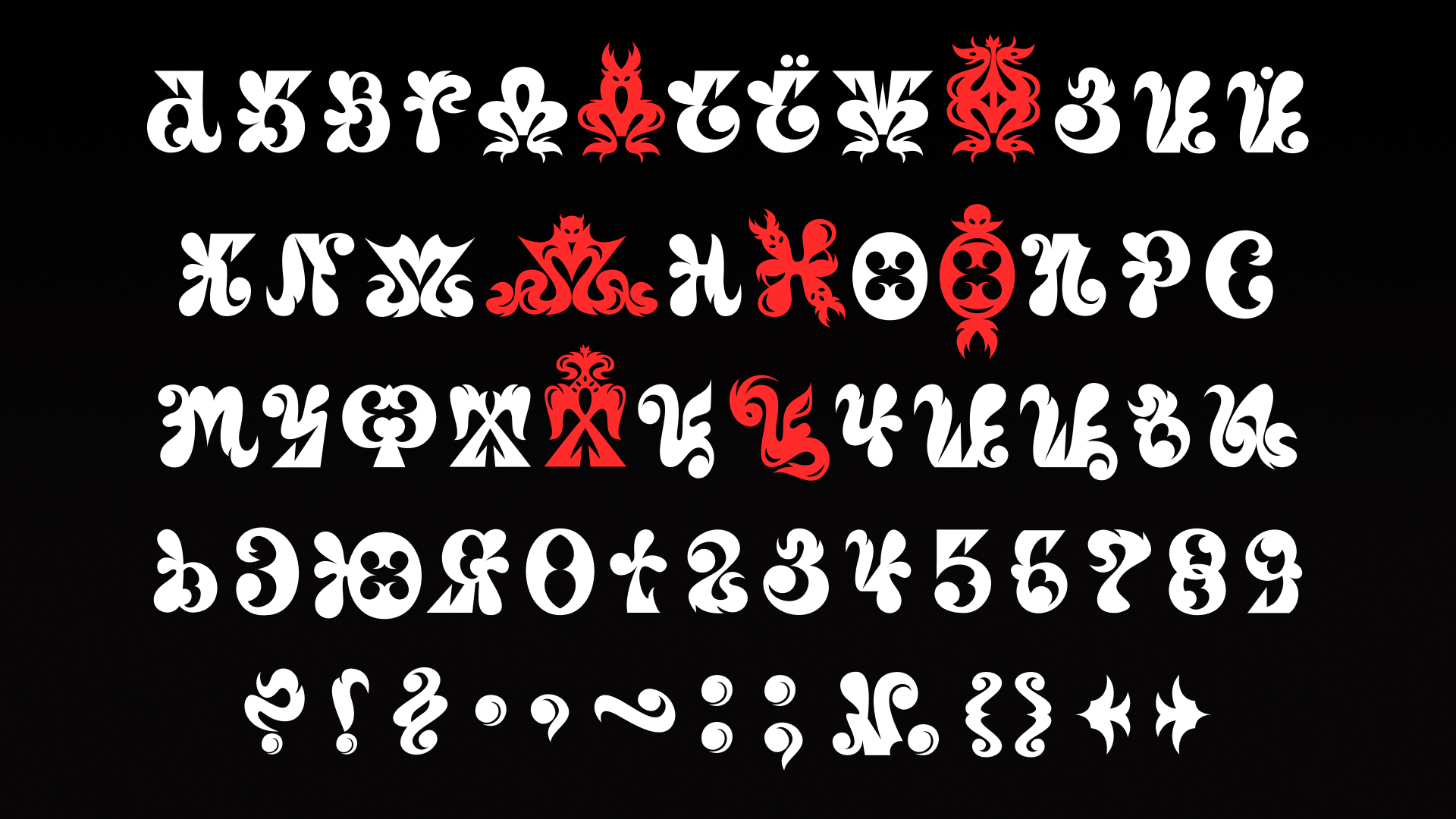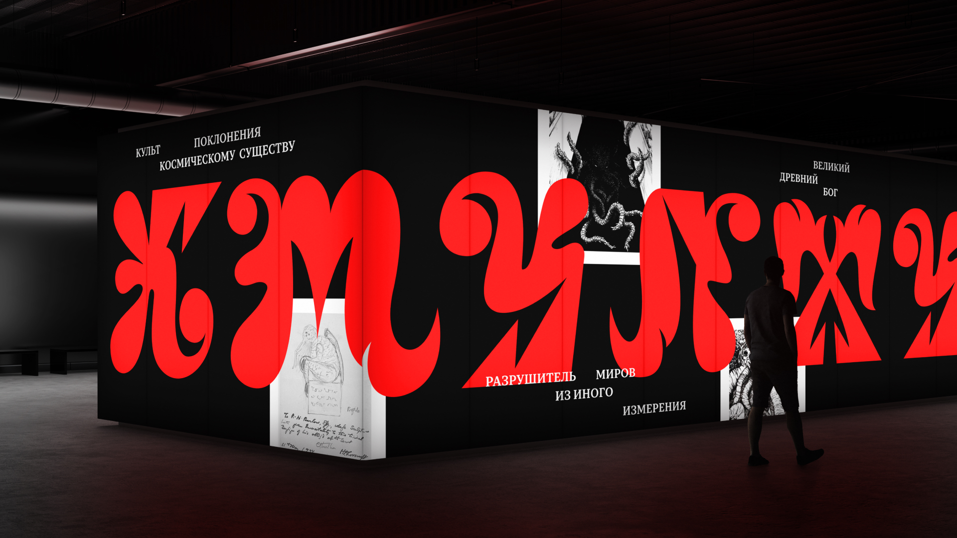 Центральным элементом проекта является специально разработанный шрифт, вдохновленный лавкрафтскими ужасами и его литературными персонажами. За каждым символом и буквой скрывается тайна неизведанного мира, побуждая зрителя задуматься о границах восприятия и открывать врата к загадочным, древним мирам. Также к шрифту были разработаны специальные буквы-монстры, которые добавляют ему загадочности и разнообразия. У каких-то букв появляются щупальца, у каких-то — рога и лапы, у других — крылья и хвосты.