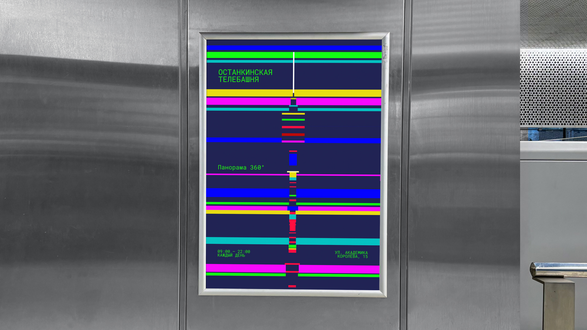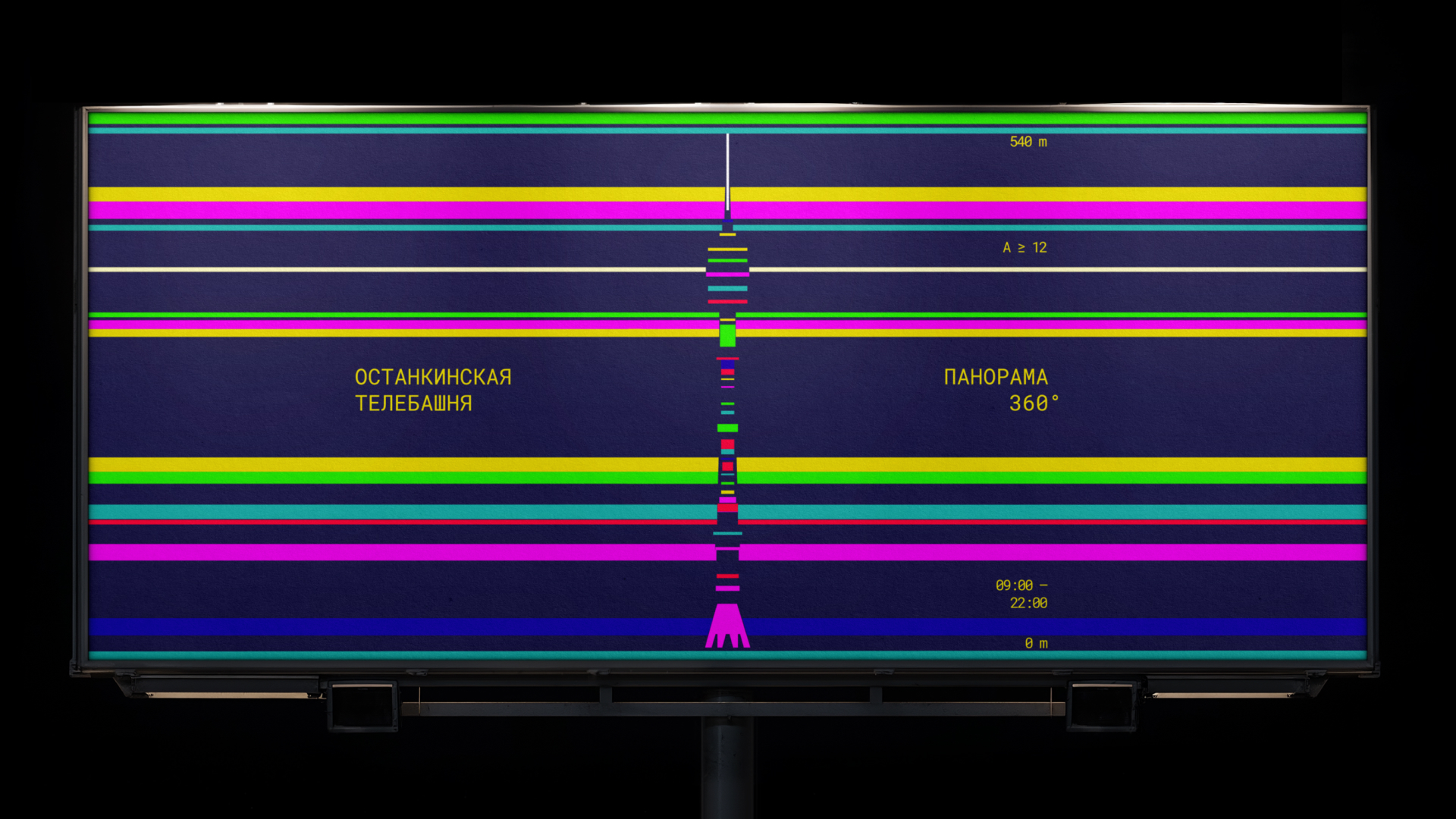 Вертикальный ритм огней, бегущие линии и мерцающие сегменты башни стали отправной точкой визуальной системы. Так архитектурная особенность объекта превратилась в самостоятельный знак, считываемый даже вне контекста самой башни.
