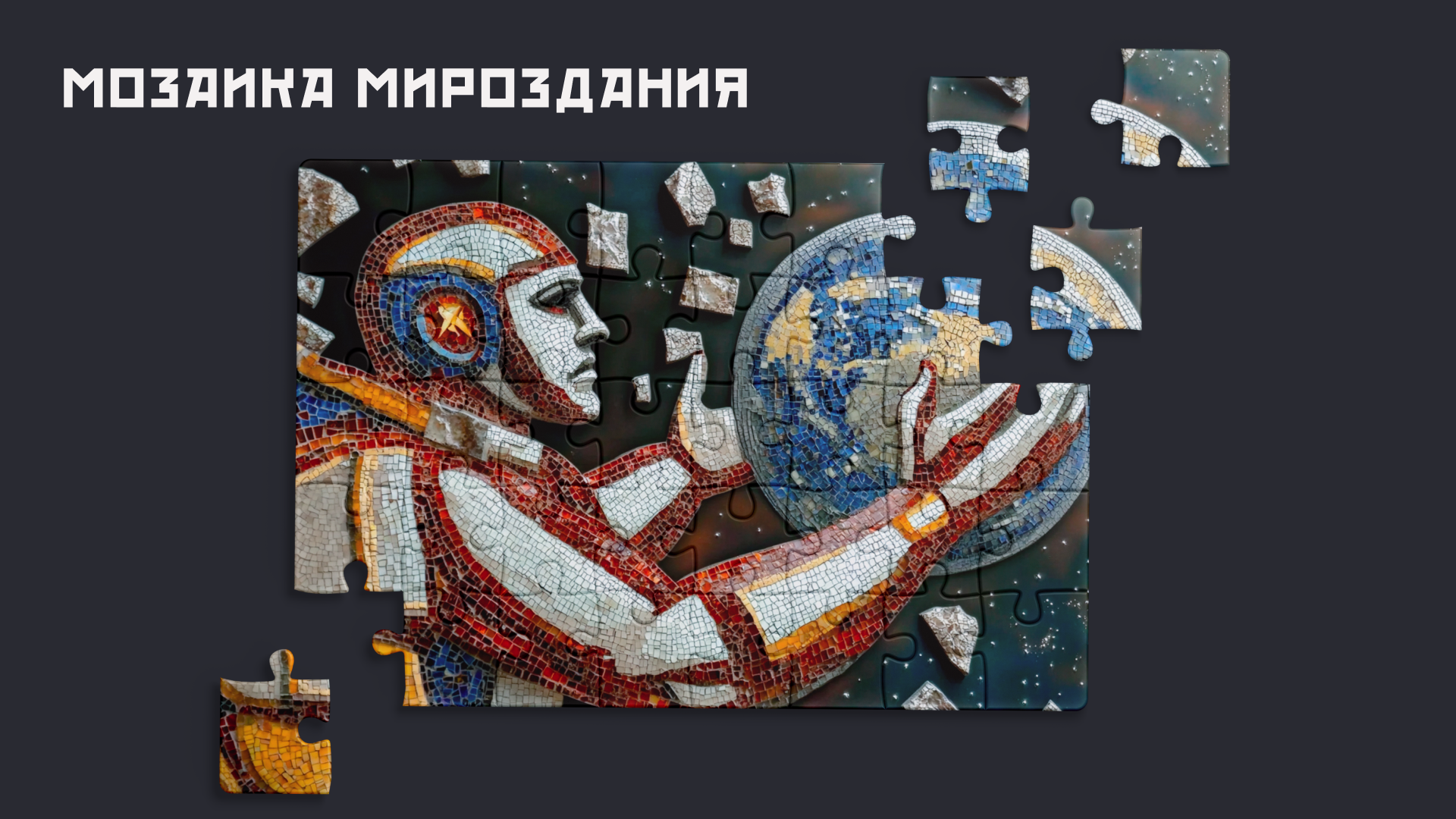 Как и в мозаике, в космосе и в космонавтике нет случайных деталей — все элементы связаны. Каждая деталь — на своём месте. Каждый вносит свою роль в величественную картину. Мозаику вселенной.