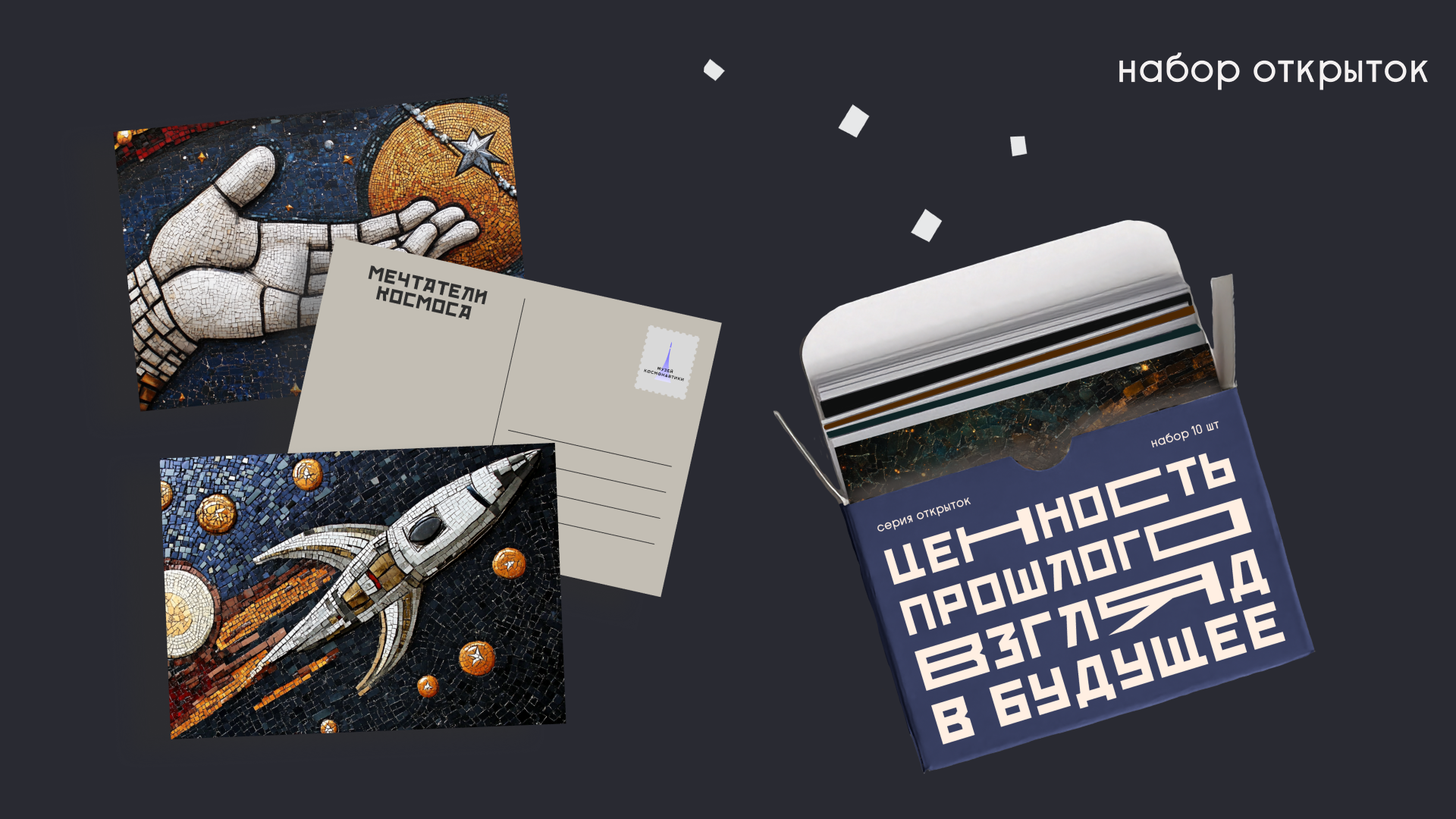 Это кейс коллекции мерча для Музея Космонавтики в Москве.