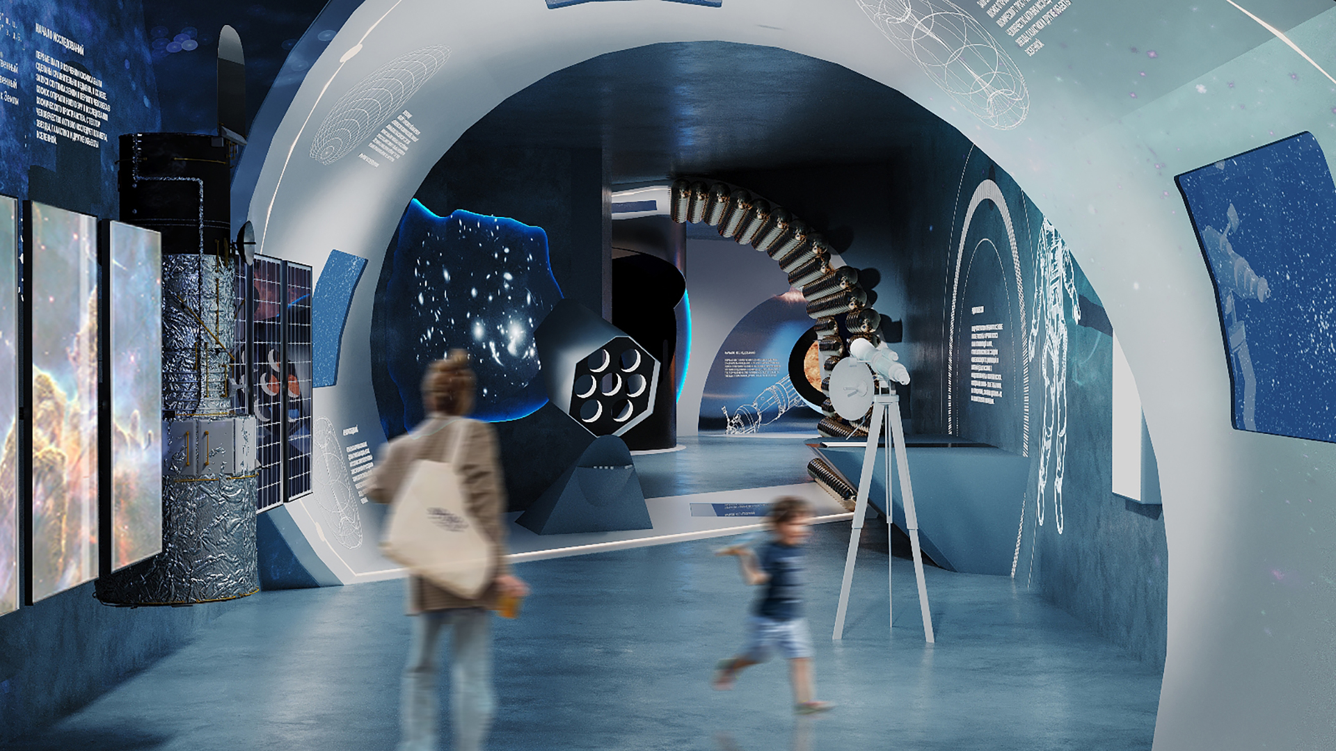 Современная экспозиция, которая приближает посетителя к открытиям Вселенной, знакомит с космосом через научные и культурологические аспекты, подчёркивает статус города и его особую роль в освоении космоса.