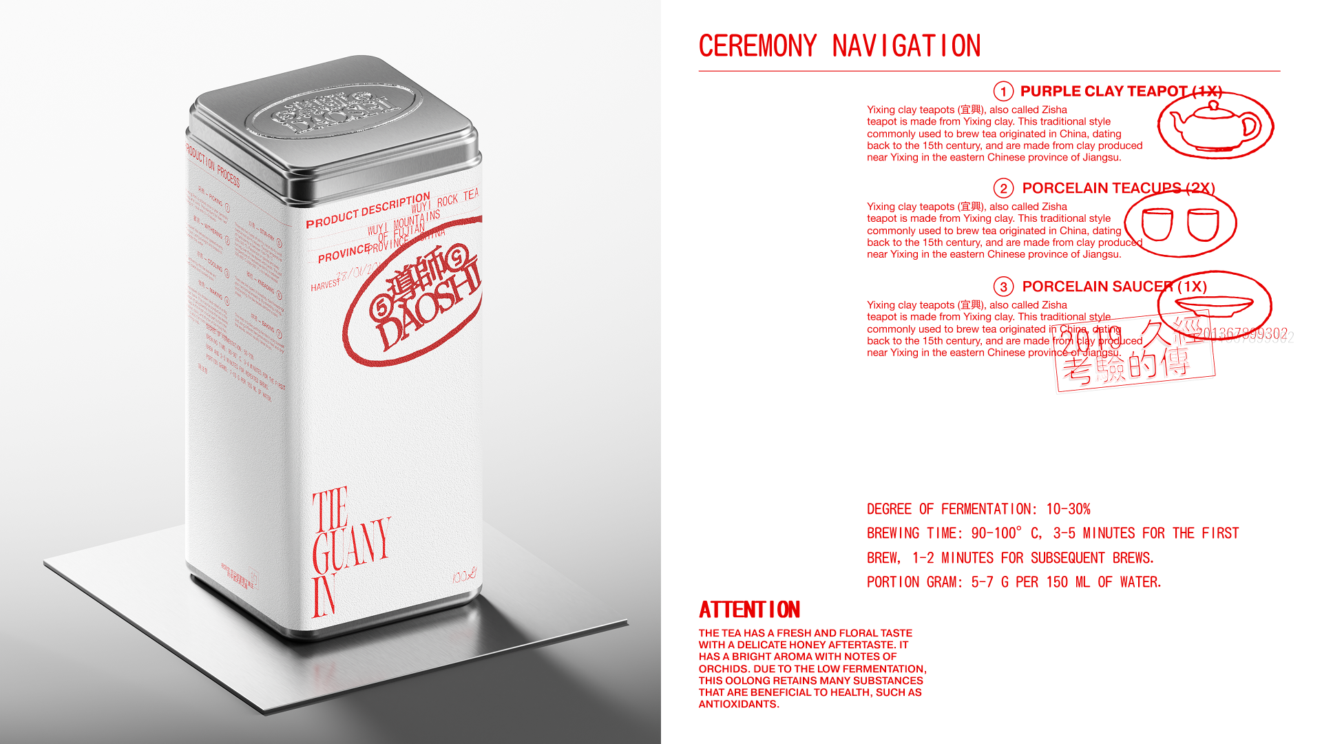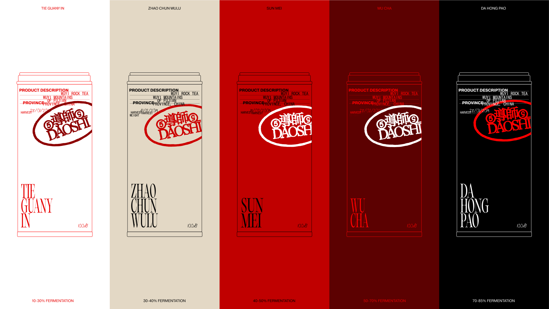 Daoshi — бренд традиционного китайского чая, нацеленный на популяризацию многолетней культуры церемониального чаепития. Упаковка пяти улунов разной степени ферментации является фактической инструкцией ко всем нюансам применения конкретного сорта чая.