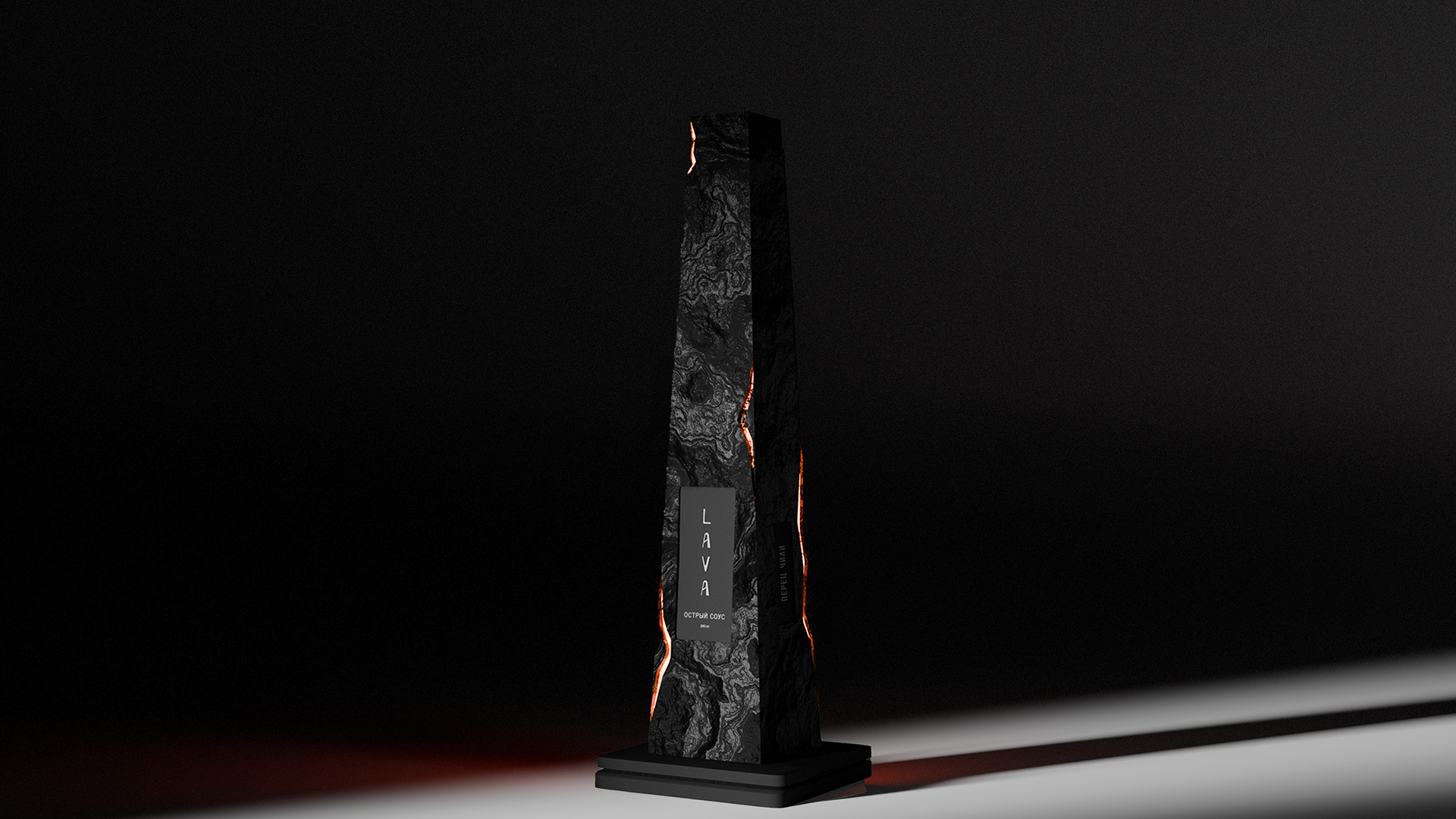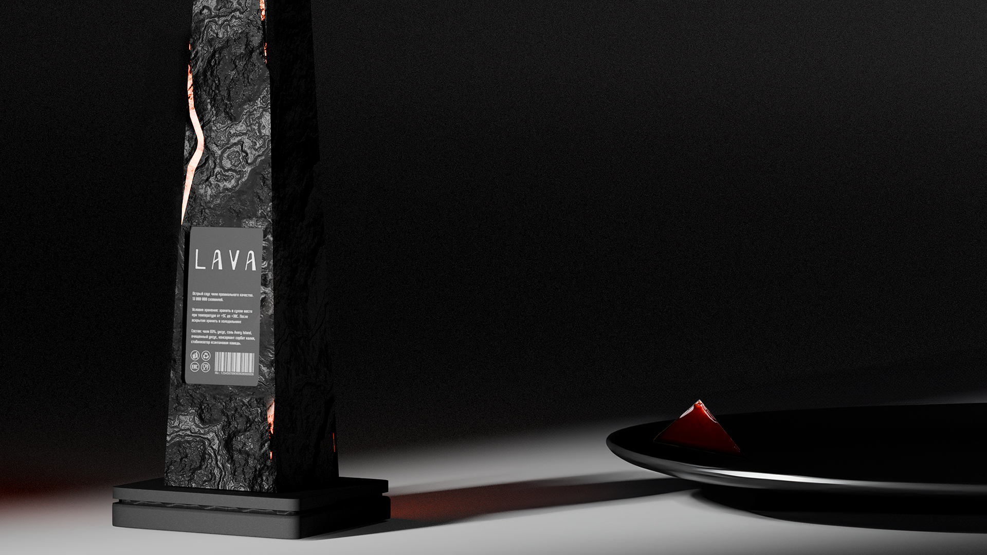 Проект создан в рамках обучения в Британке. Вдохновением для оформления соуса стал сам характер продукта: исключительная острота, способная «раскалить» даже упаковку, — едва видимые следы подпалённых граней символизируют степень остроты соуса.