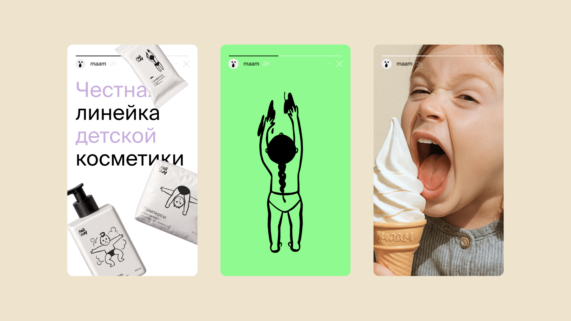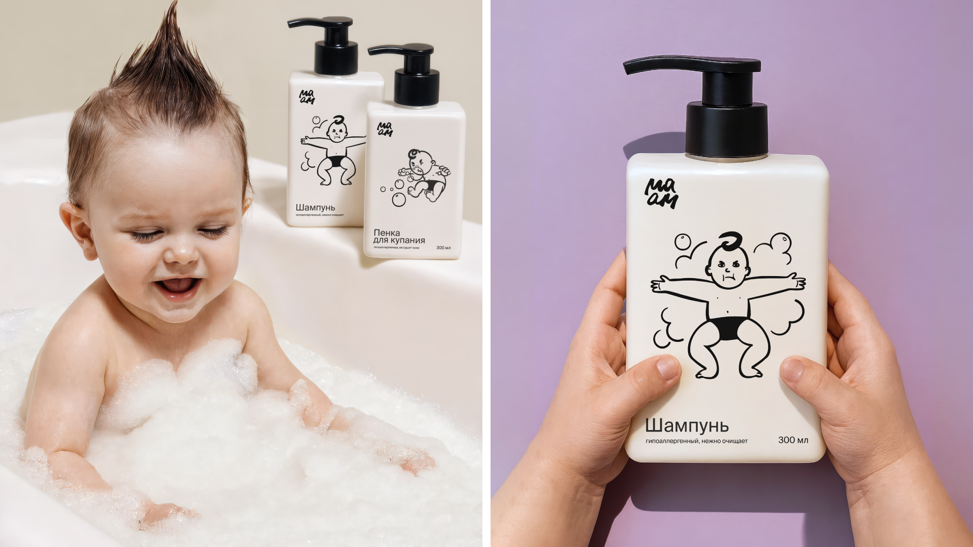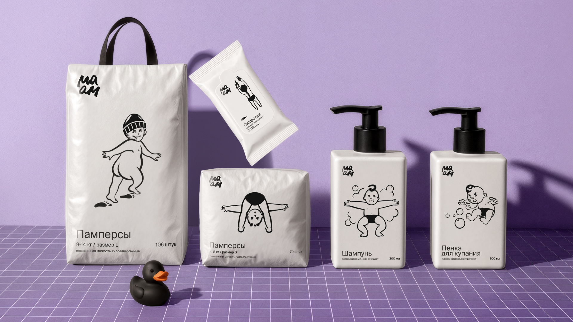 Материнство полно разных моментов — и радостных, и сложных, когда из ванной раздаётся тревожное: «Мааааам!» Молодым родителям легко оказаться в ситуации, когда несоответствие ожиданий и реальности фрустрирует, заставляя сомневаться в себе. Концепт бренда МААМ — это линейка честной косметики для детей и их мам, которая поддерживает аудиторию и общается с ней искренне. Бренд не приукрашивает и не сгущает краски, позволяя родителям узнавать себя и своего ребёнка в забавных, отрисованных вручную иллюстрациях. Упаковка подчёркивает реальность материнства: она показывает, что дети пачкаются, рисуют и пробуют всё на вкус — и это нормально. Логотип, выполненный вручную, сочетает минимализм и эмоции заботливого материнского сердца. Характер бренда проявляется и в мерче, где предметы созданы с юмором и на основе правдивых инсайтов — например, маска для короткого сна или холдер для салфеток. Фирменный стиль и коммуникация бренда строятся на честности, простоте и человечности, показывая материнство таким, какое оно есть на самом деле. Концепт МААМ поддерживает родителей в сложные моменты, подчеркивая нормальность ситуаций и создавая доверие к бренду, не обещая «идеального решения».