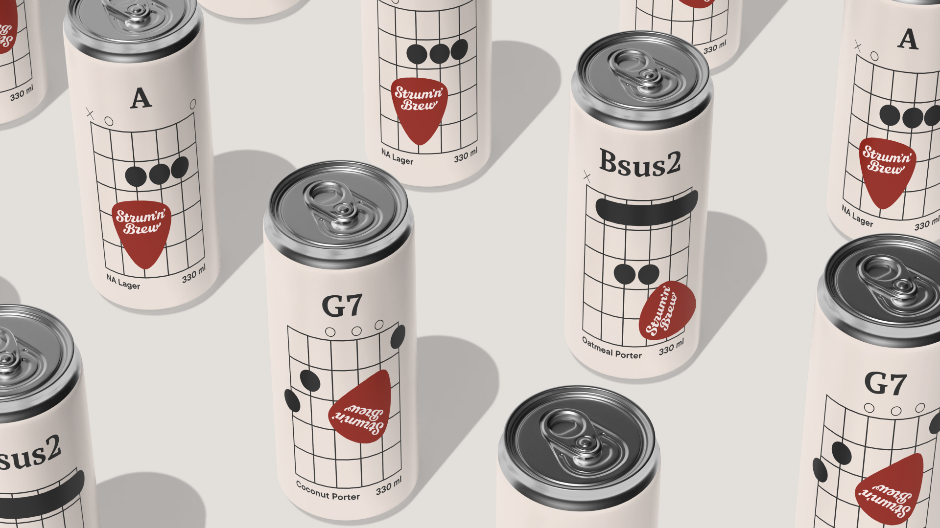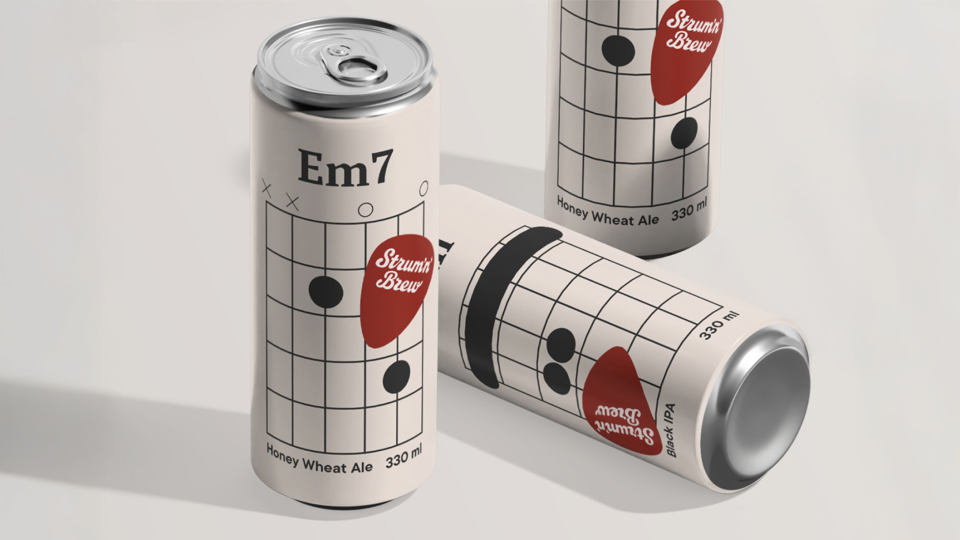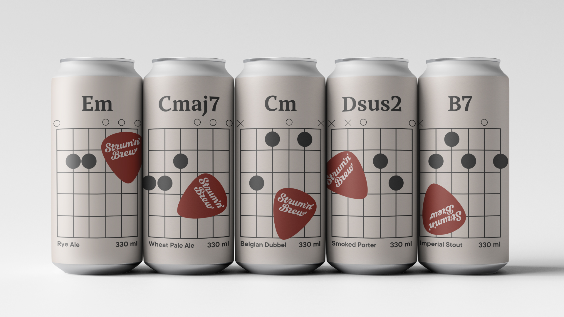 Крафтовое пиво для настоящих рокеров. Каждому SKU присвоен уникальный аккорд, графическим воплощением которого является схема, знакомая каждому, кто хоть раз пытался научиться играть.