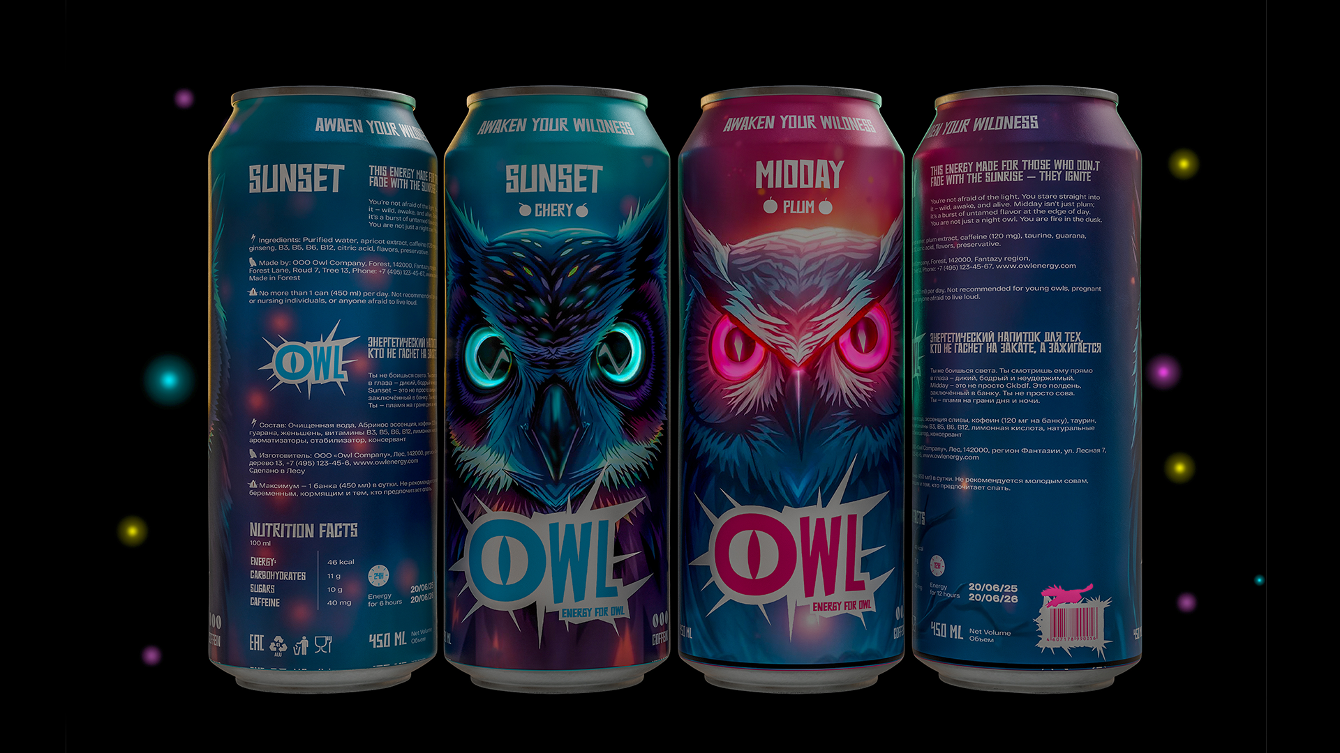 Owl — энергетик для бунтарских молодых сов, которым надоела темнота ночи. Те, которые не боятся ужасов дня.