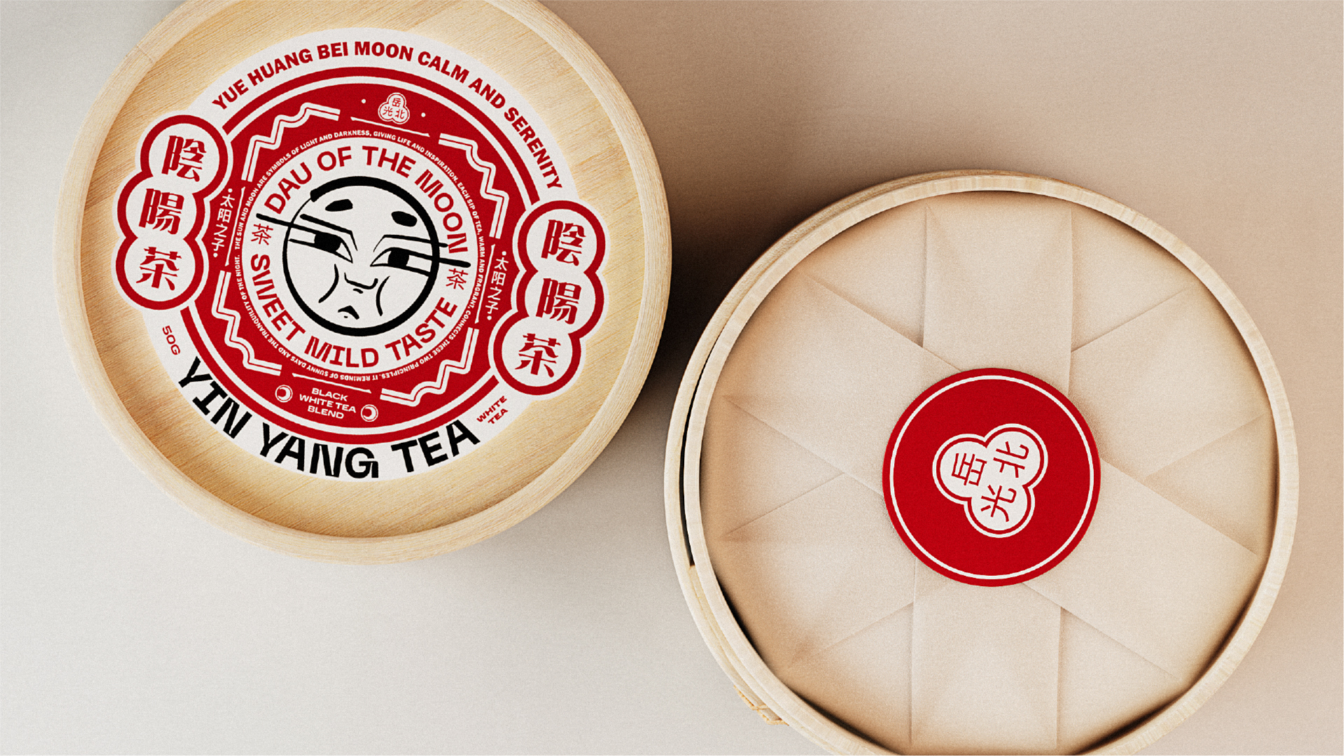 На двусторонней упаковке изображены два персонажа китайской мифологии Солнце и Луна, символизирующие двойственность напитка который находится внутри — купаж чаев с высокогорных плантаций.