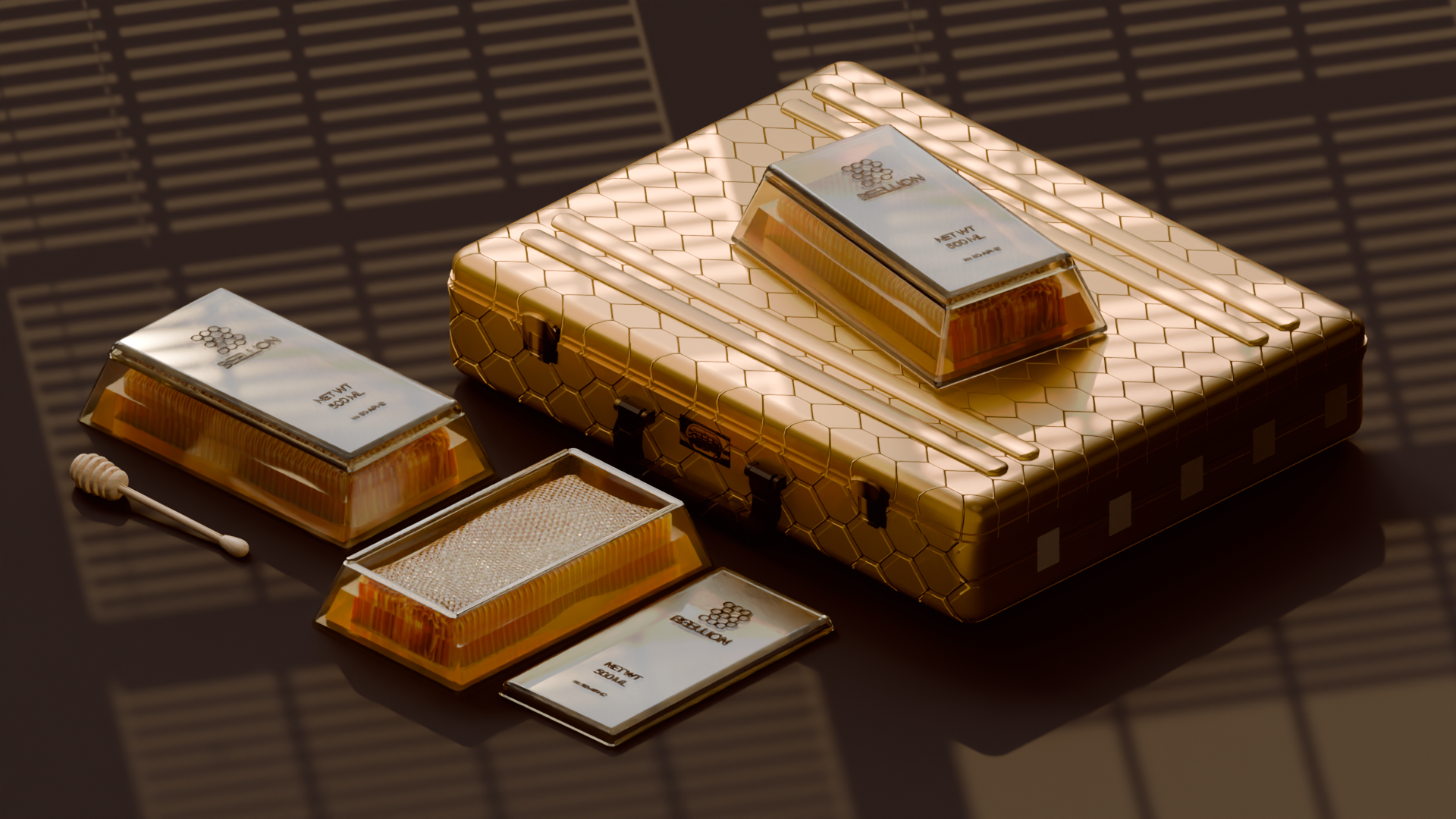 Название BEELION родилось на пересечении слов bee (пчела) и bullion (золотой слиток). Так в одном слове соединились природное и материальное богатство — труд пчёл, создающих мёд, и форма драгоценного металла, в которой этот труд воплощён.