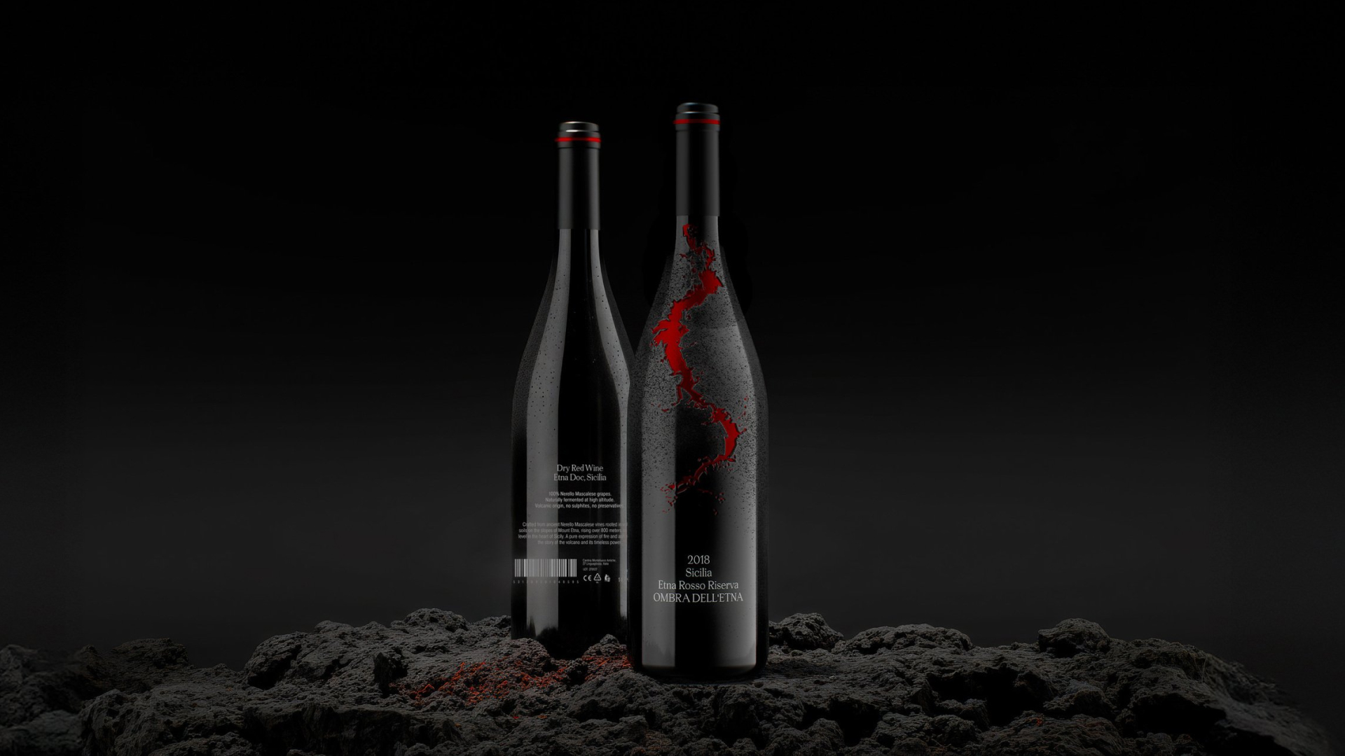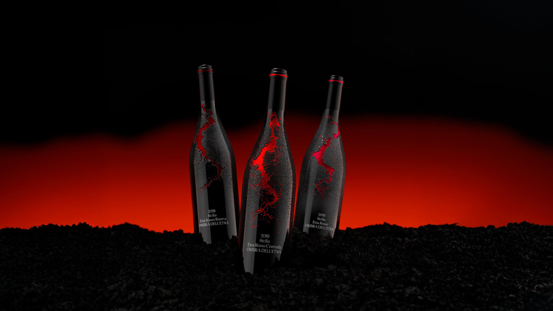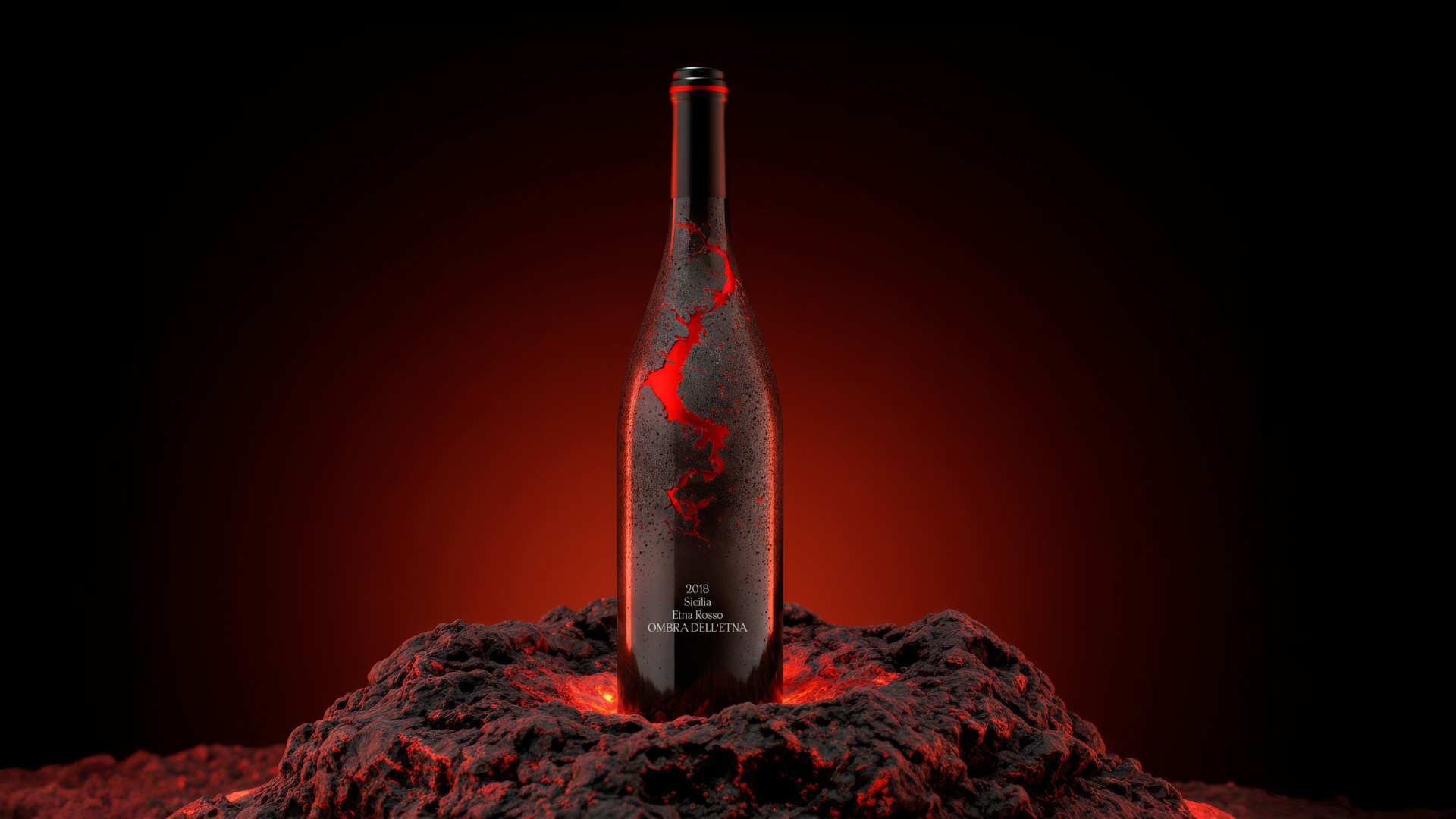Упаковка показывает связь между вином и вулканом Этна — источником его почв и минеральности. Поверхность бутылки стилизована под вулканический камень, а красный разлом символизирует магму, энергию, проходящую сквозь землю и превращающуюся во вкус вина. Чем насыщеннее и структурнее вино, тем шире и активнее разлом на бутылке.