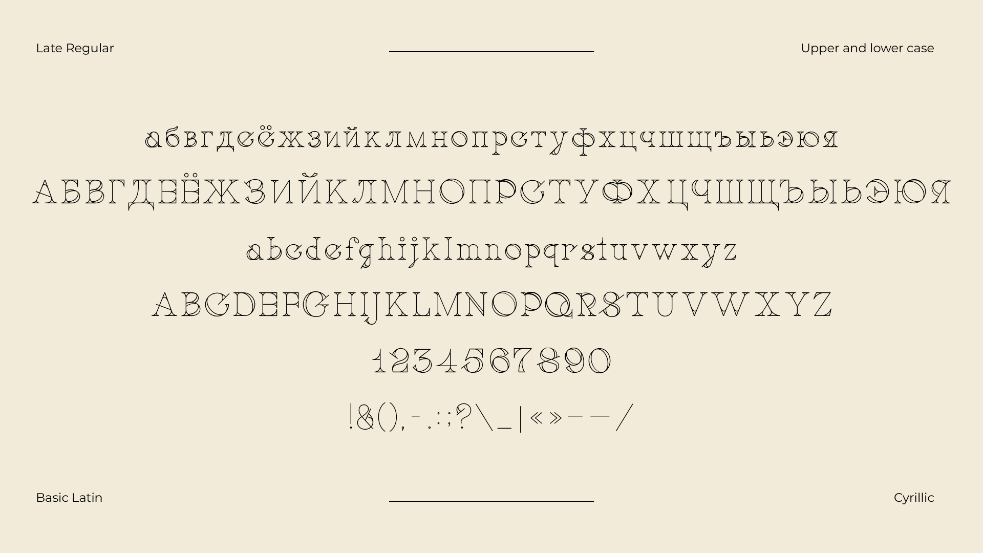 Шрифт Late — чистое вдохновение от увиденного однажды необычного шрифтового решения в книге издательства TASCHEN "Type. A Visual History of Typefaces & Graphic Styles". На мой взгляд, шрифт Late приобрёл кросс-культурный характер, что делает его актуальным для различных визуальных коммуникаций. Стиль обращается к широкой аудитории, что позволит ему находить отклик независимо от визуального языка или сферы применения. Гармоничное сочетание традиций (увиденный кусочек из книги TASCHEN) и современности в образах новых букв, а также широкие возможности применения делают его чрезвычайно привлекательным для работы с типографикой. Каждый шрифт — это не просто набор букв, это история, эмоция и источник вдохновения. Надеюсь, мой новый шрифт Late станет для кого-то вдохновением.