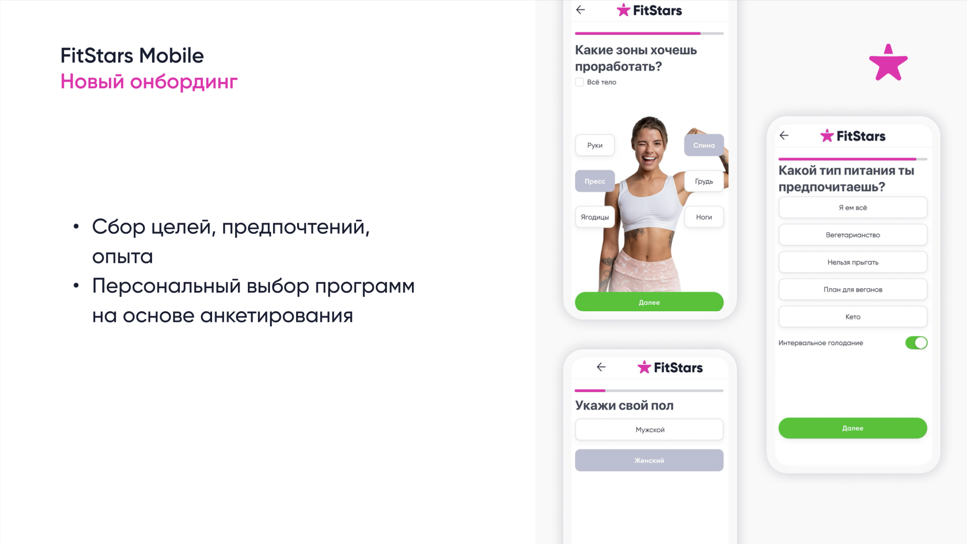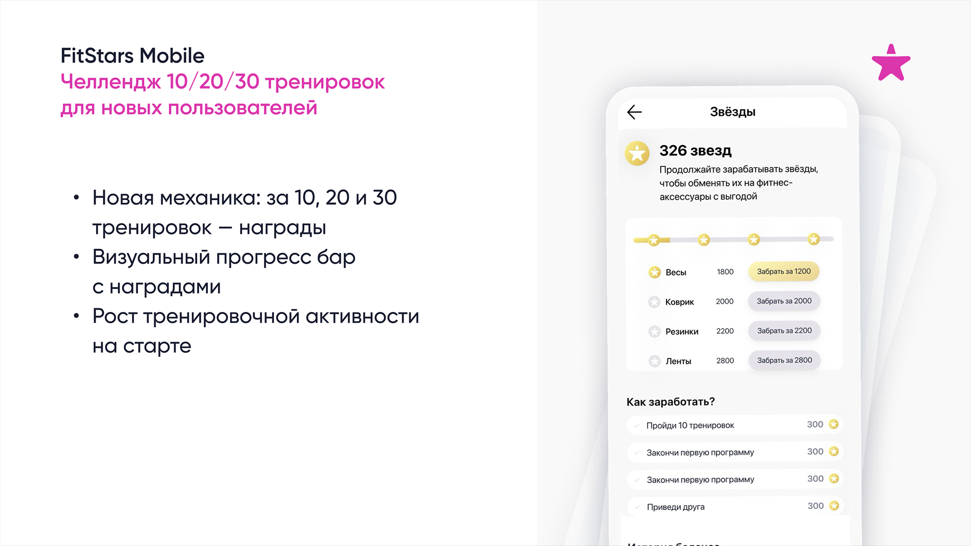 Редизайн первых шагов пользователя в приложении FitStars