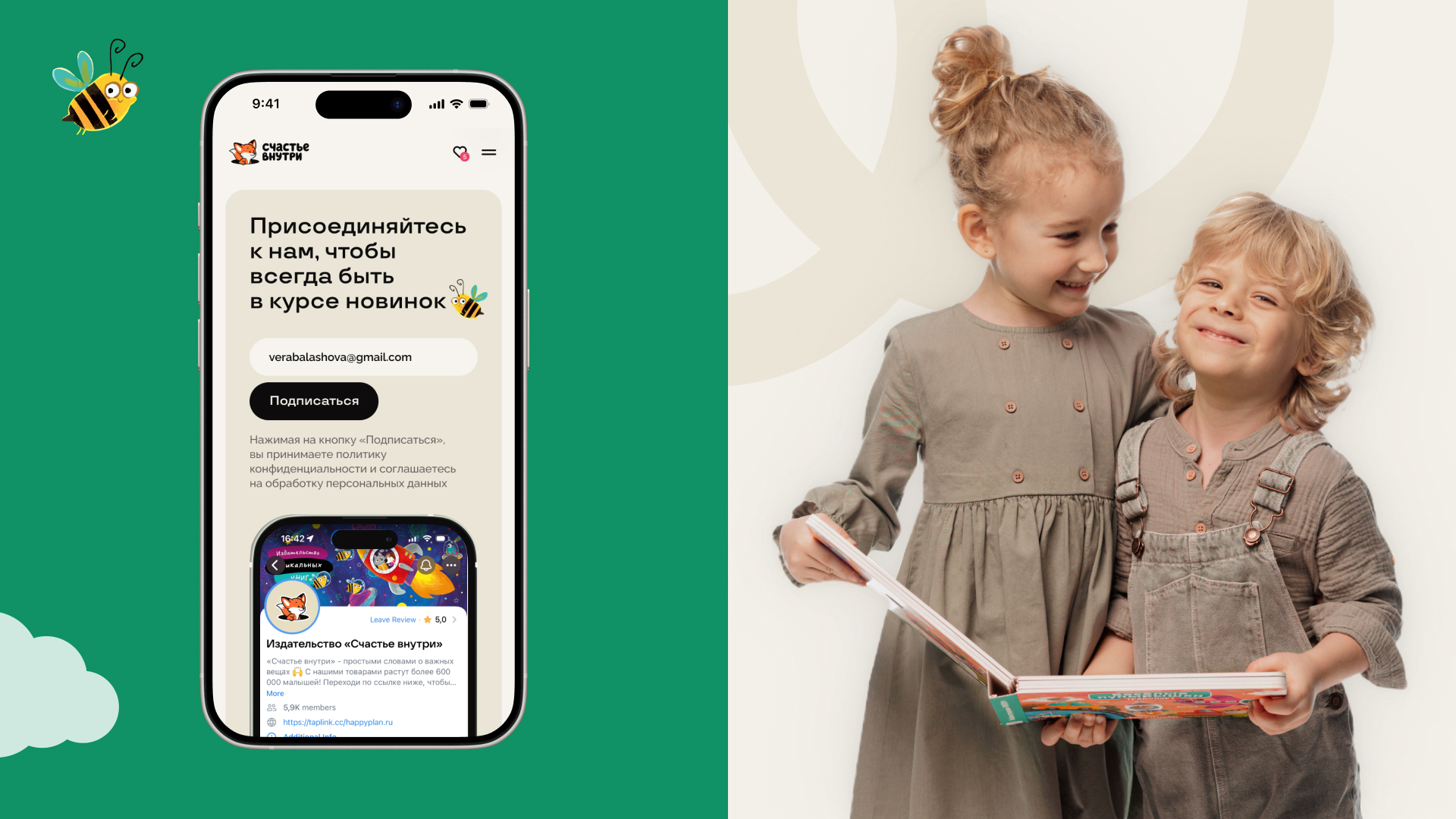 «Счастье внутри» — детское издательство, выпускающее уникальные интерактивные книги для малышей от 0 до 7 лет.