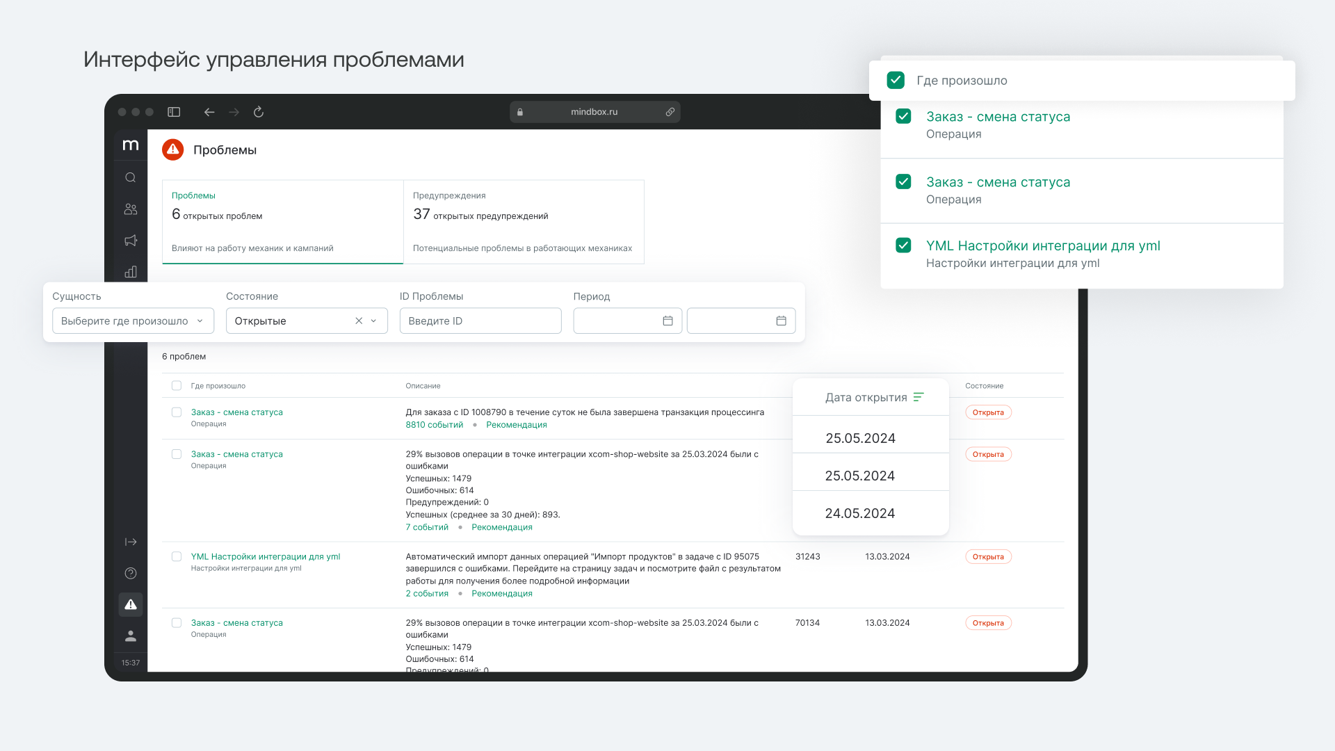Мы начали с анализа пользовательского опыта и выявили основные сложности: поиск функций занимал слишком много времени, интерфейсы были разрозненными и перегружали пользователей. Вместе с командой Mindbox мы предложили гипотезы по улучшению, протестировали их и выстроили решение.