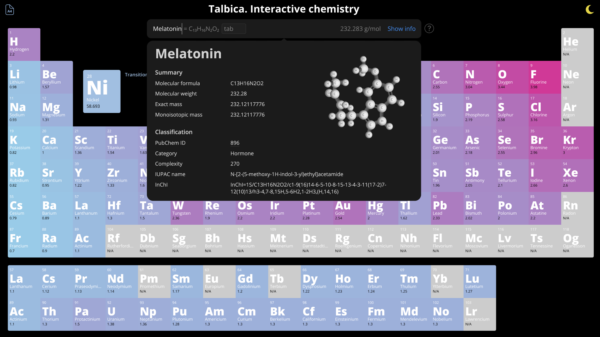 Talbica — интерактивная таблица Менделеева, переосмысленная для 21 века.