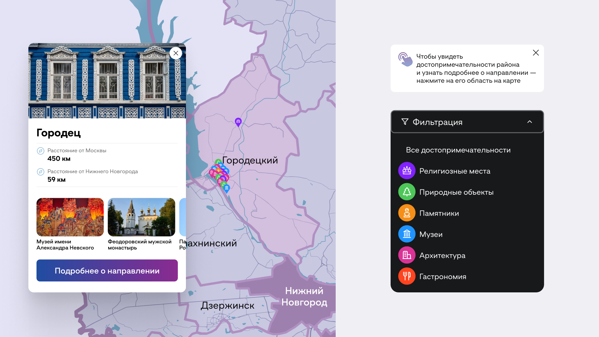 2. Объекты в Нижнем Новгороде и области для тех, кто готов выезжать за город и изучать регион.