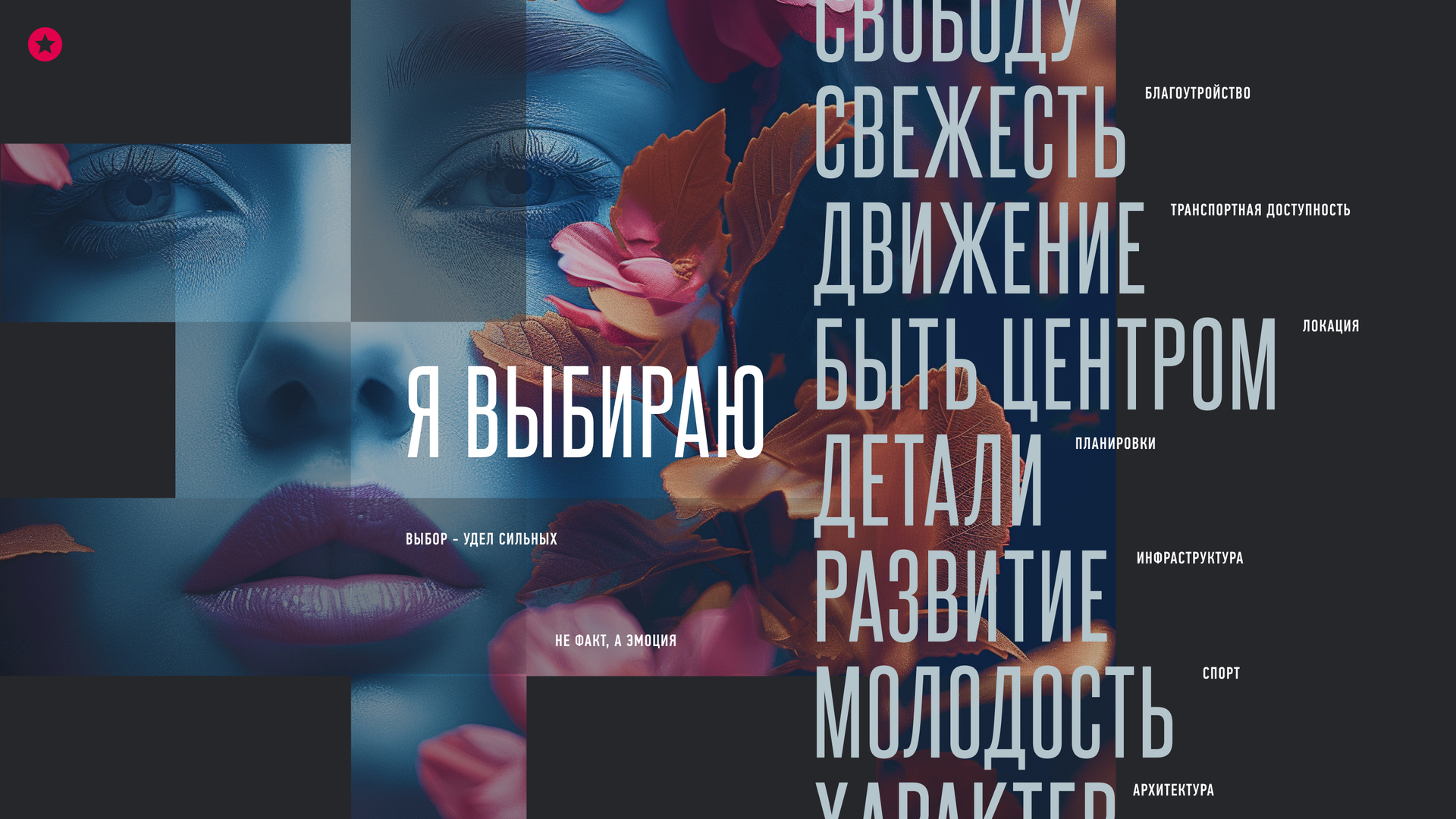 4. Особенность проекта — его размах, это три небоскреба, большая территория, множество сервисов, ультрасовременные архитектурные и технические решения. Поэтому особое внимание уделено пользовательскому пути — всего 2 скролла до самой сути.