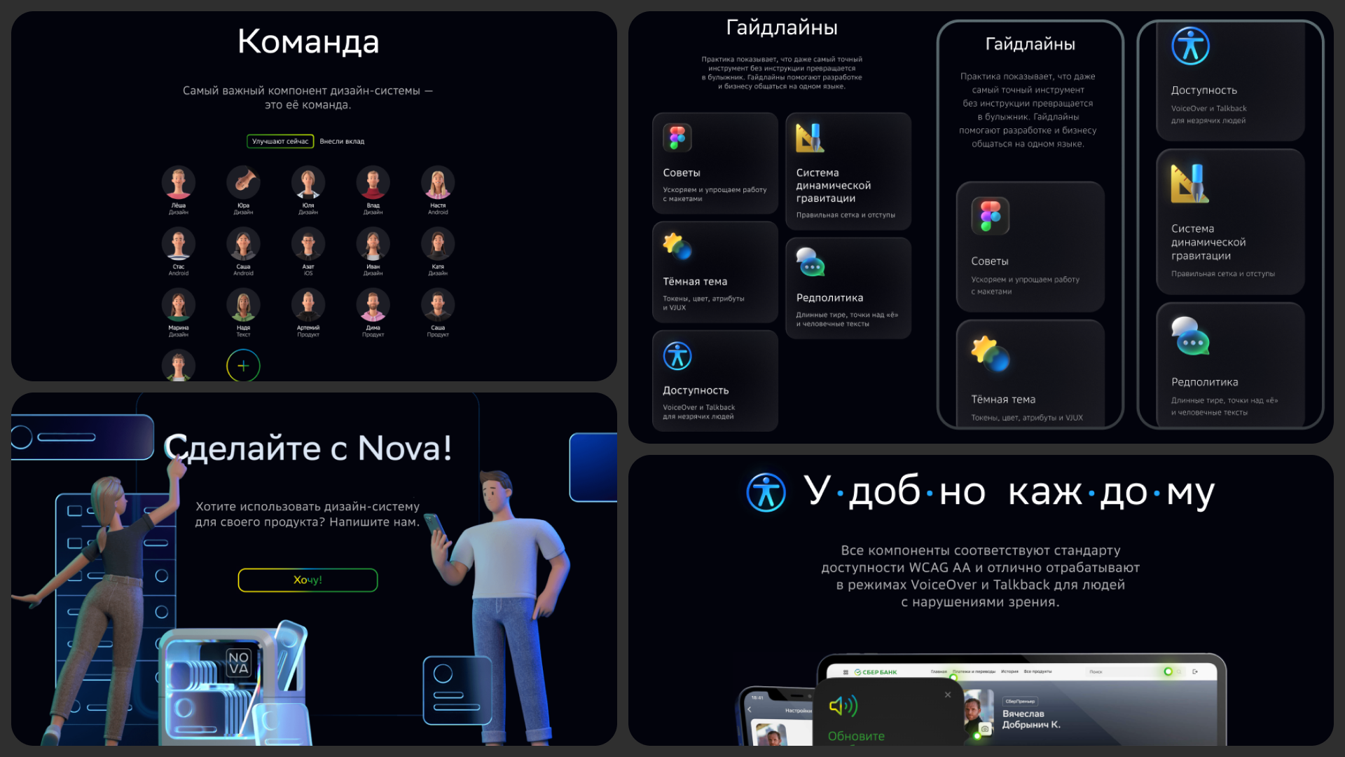 Дизайн система Nova это масштабируемая дизайн-система, которая обеспечивает единообразие интерфейсов Сбера и ускоряет запуск новых продуктов за счёт готовых решений и прозрачной документации. Она стандартизирует визуальные и функциональные паттерны в цифровых продуктах Сбера. Снижает time-to-market и сокращает рутину за счёт переиспользуемых компонентов.