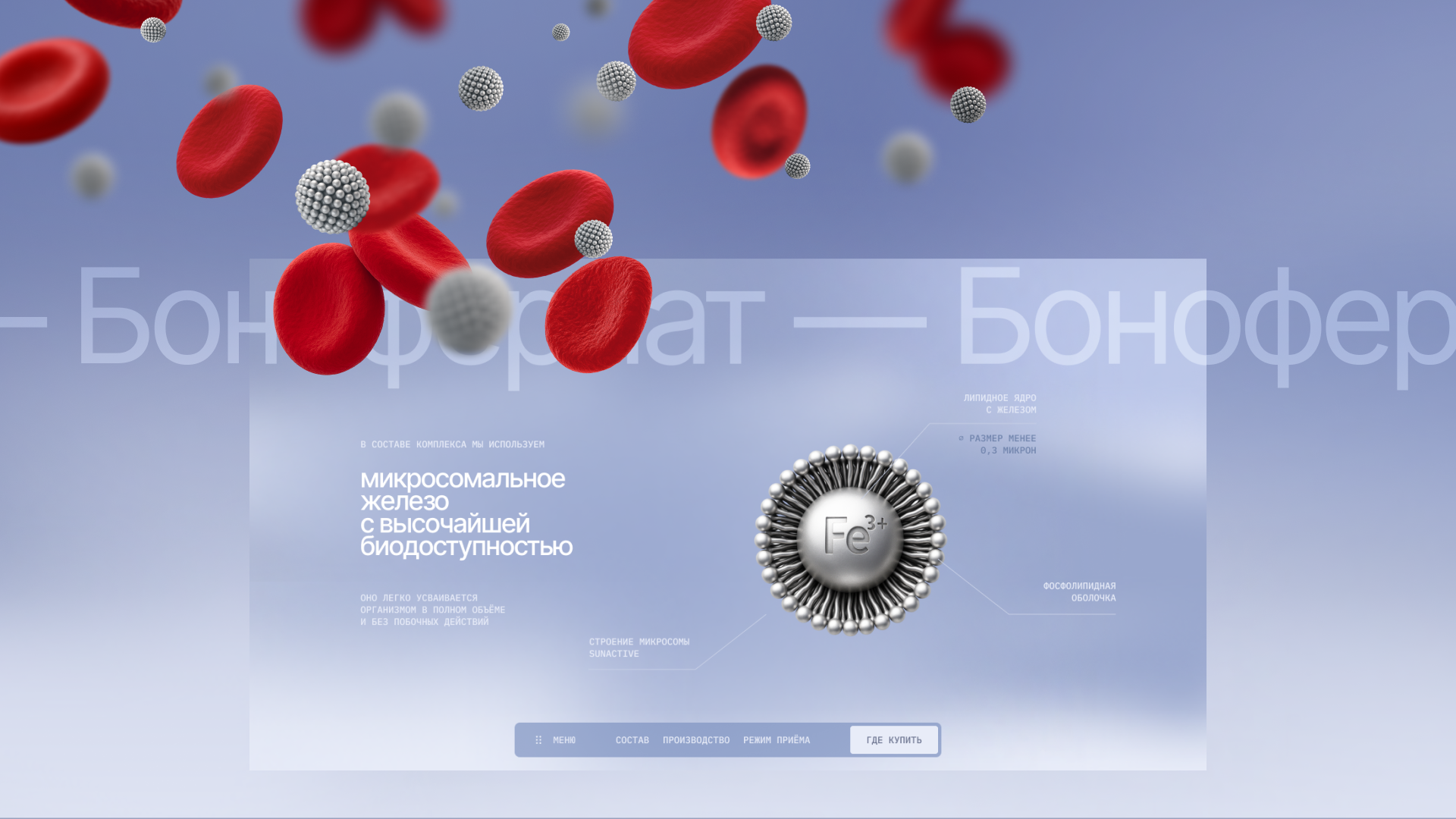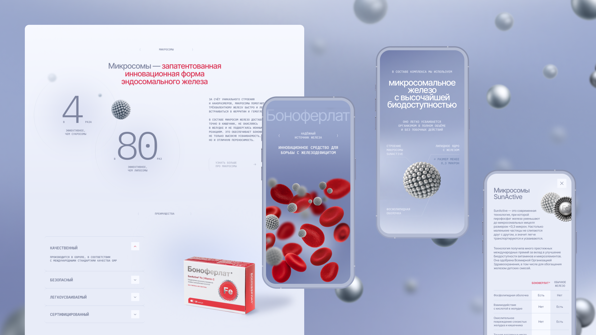 Клиент обратился с запросом на разработку B2C-сайта для БАД. Главной задачей было донести пользу продукта как людям, которым врач назначил железо, так и тем, кто просто заботится о своем здоровье. Сделать акцент на технологичности, инновационности, безопасности и европейском качестве.