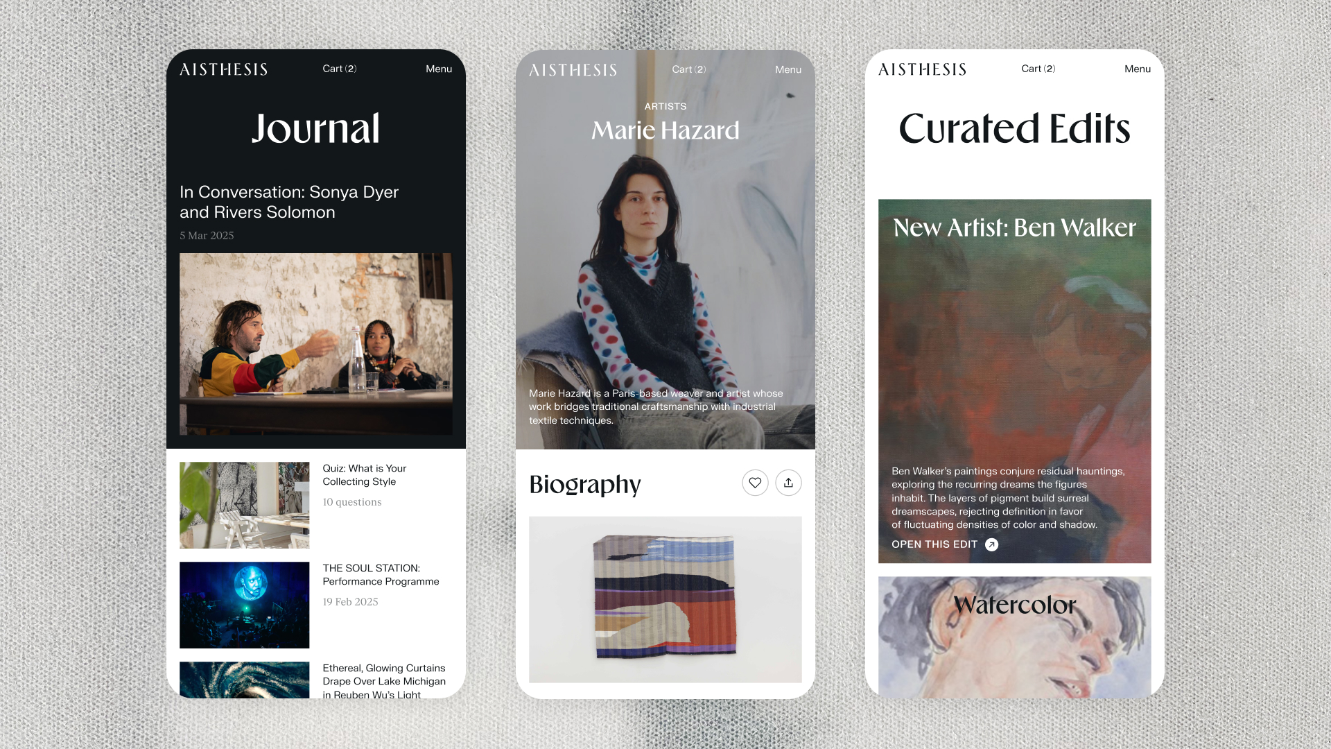 Лондонская галерея современного искусства Aisthesis Gallery строит международное сообщество вокруг новых имён и идеи открытого, инклюзивного коллекционирования.